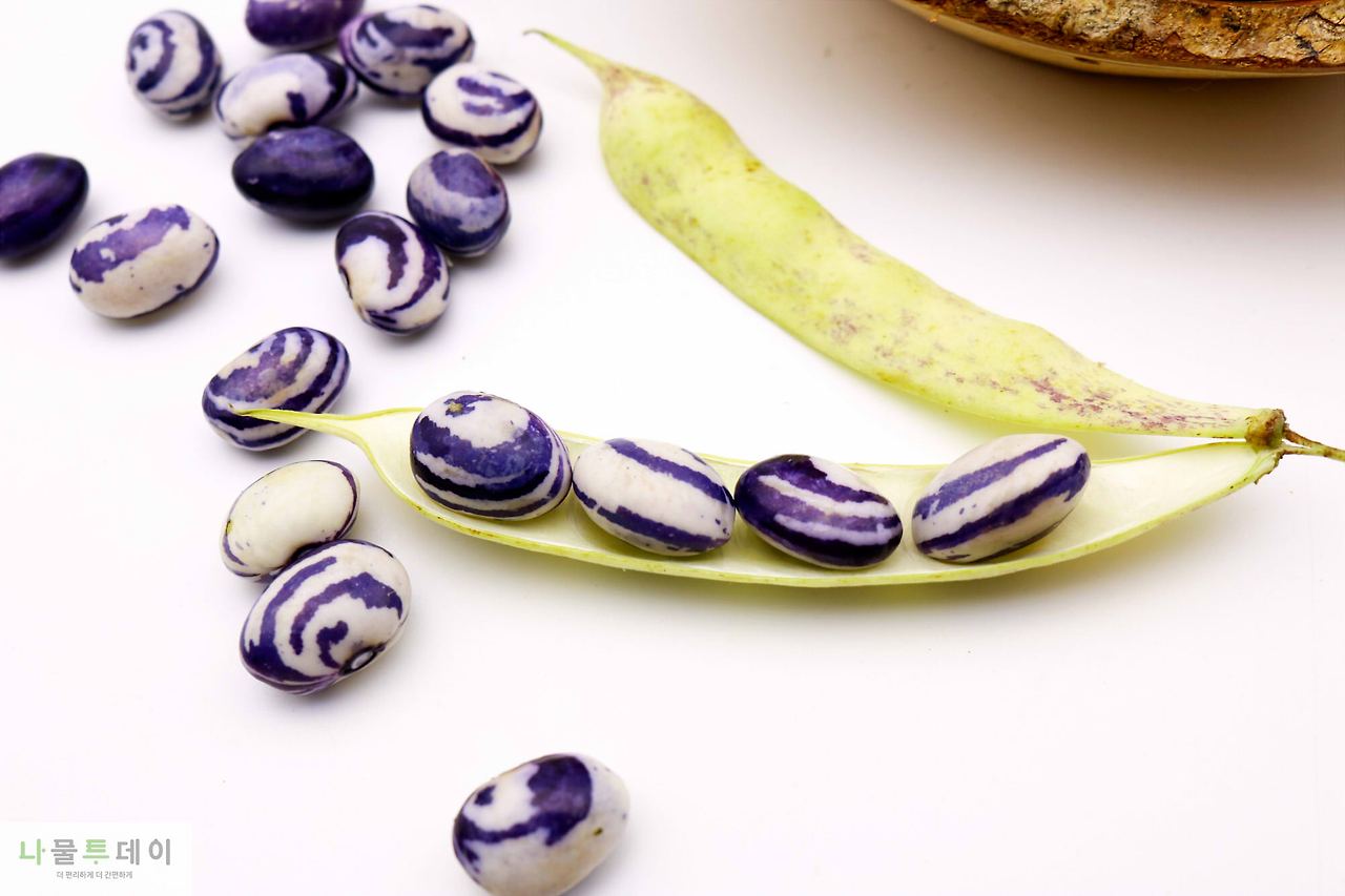 호랑이콩 못지않은 화려한 무늬, 더 진한 보랏빛 때깔을 자랑하는 제비콩.