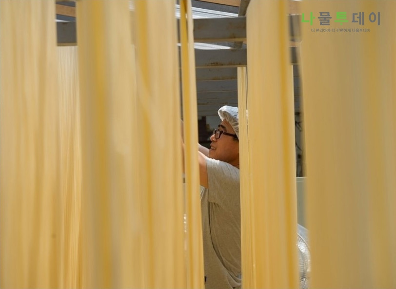 그렇게 완성된 국수는 탄력을 갖게 되고 국수 속 기포가 거의 없는 고품질의 국수로 거듭난다.