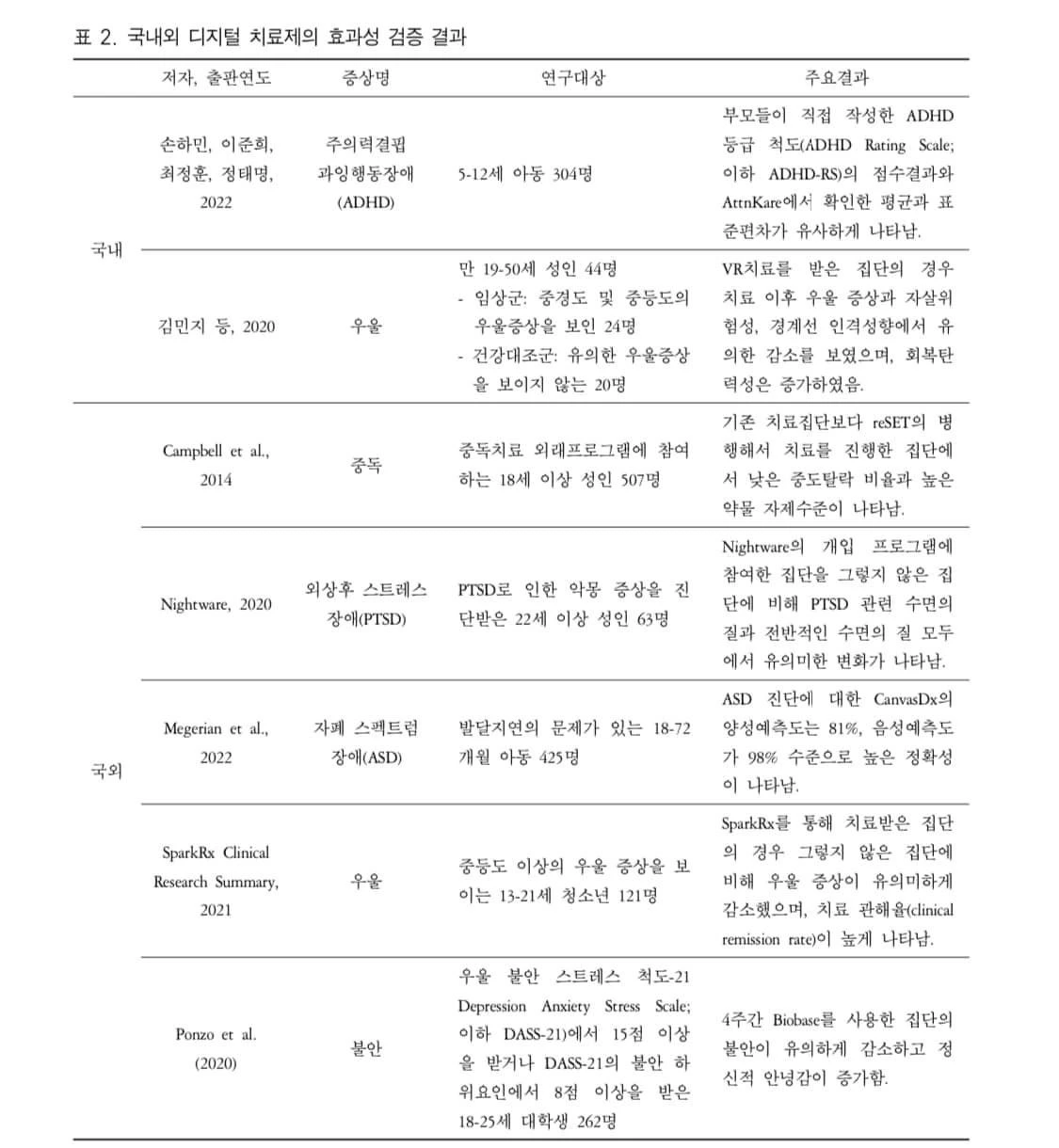 정신건강 영역에서의 디지털 치료제 동향과 시사점, 김성현 외, 한국심리학회지, 2022