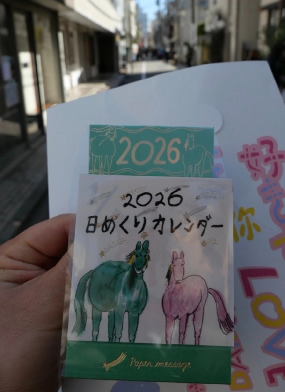 2026년 달력이 눈에 들어왔다. 청록과 분홍 말이 묘하게 역동적인 느낌을 준다. 스마트폰 캘린더로는 느낄 수 없는 아날로그 달력의 감성. 집에 도착하자마자 나는 지난 1월과 2월의 하루를 뜯었다.