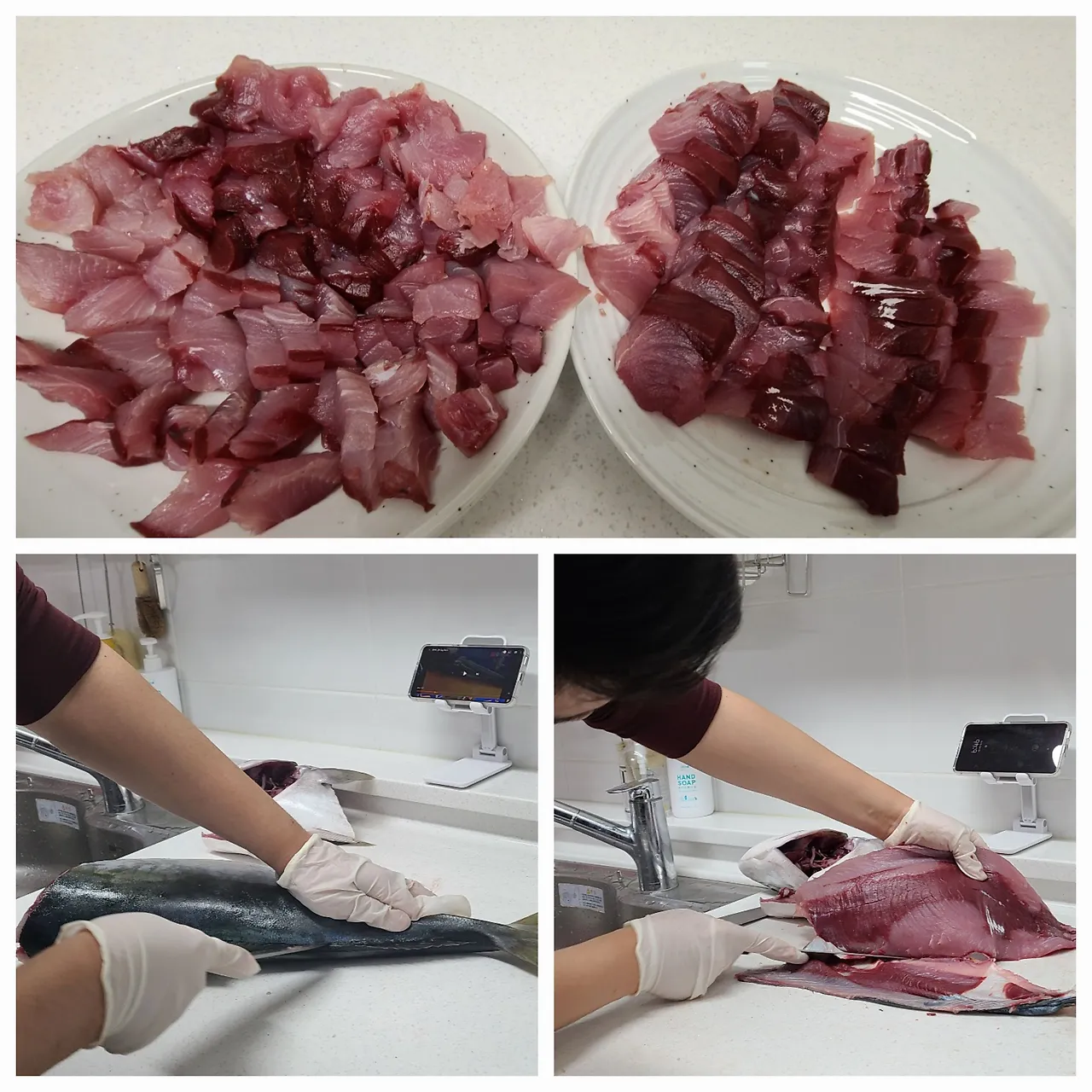 지인들이 가끔씩 직접 잡아서 주시는 생선들이 있는데, 방어를 주신 날.남편이 방어 해체를 하고 회를 떠서 먹었다.
