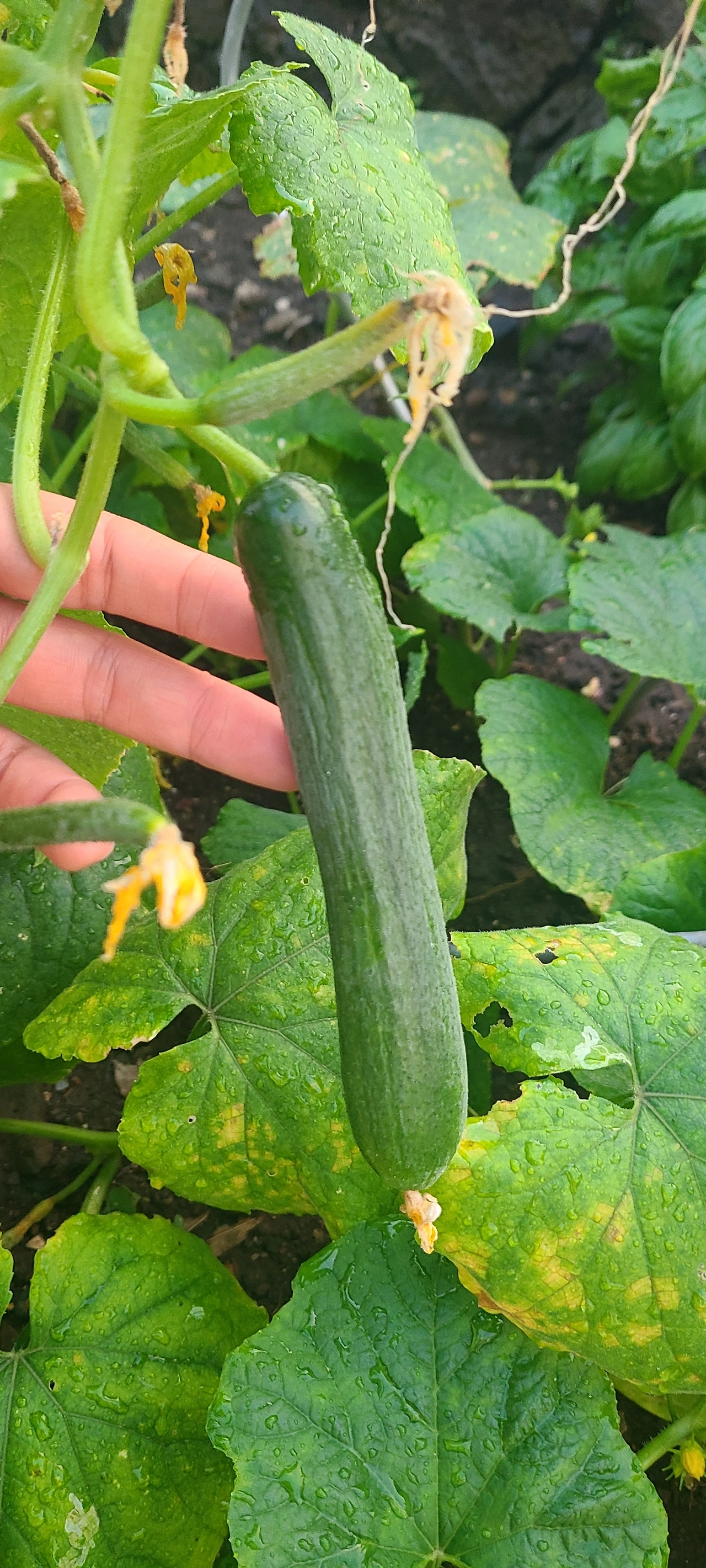 작고 소중한 오이들이 자라고 있다남편과 나는 동시에 환호성을 지르며 기뻐하며 사진을 찍고 신기해서 한참을 쳐다봤다. 언제 자랐지 하며 못 봤는데, 라며 서로에게 주거니 받거니 이야기하며 오이가 비로소 제 모습을 갖추어 나가는 것에 경이감을 느꼈다.