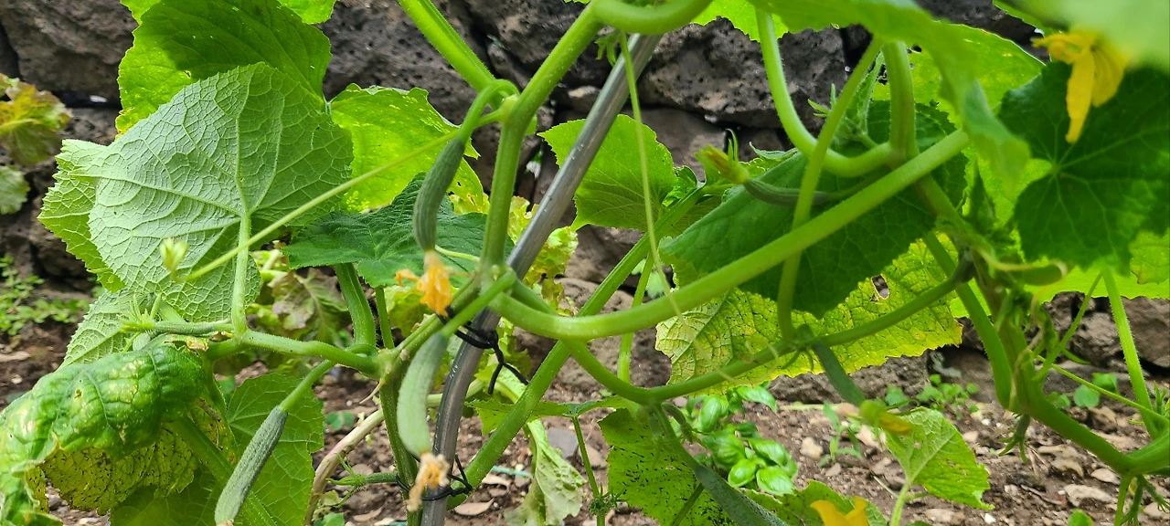 남편은 아삭아삭한 식감을 좋아한다. 아삭아삭한 데다가 청량함까지 있는 오이는 남편의 최애 채소 중에 하나다. 그래서 유독 텃밭에서 식물을 키울 때 오이를 재배하고 싶어 했다. 그래서 여러 식물 유튜브를 보고 그중 어느 유튜버 분께서 추천하시는 오이를 키워 볼 요량으로 오이 씨앗에 지피포트에 영양제까지 세트로 파는 상품을 주문했다. 그래서 정성스럽게 발아를 시키고 제법 식물의 모습을 갖추었을 때 텃밭에 옮겨 심었다. 덩굴 식물인 오이의 특성에 맞게 철사 지지대도 설치해서 말이다.