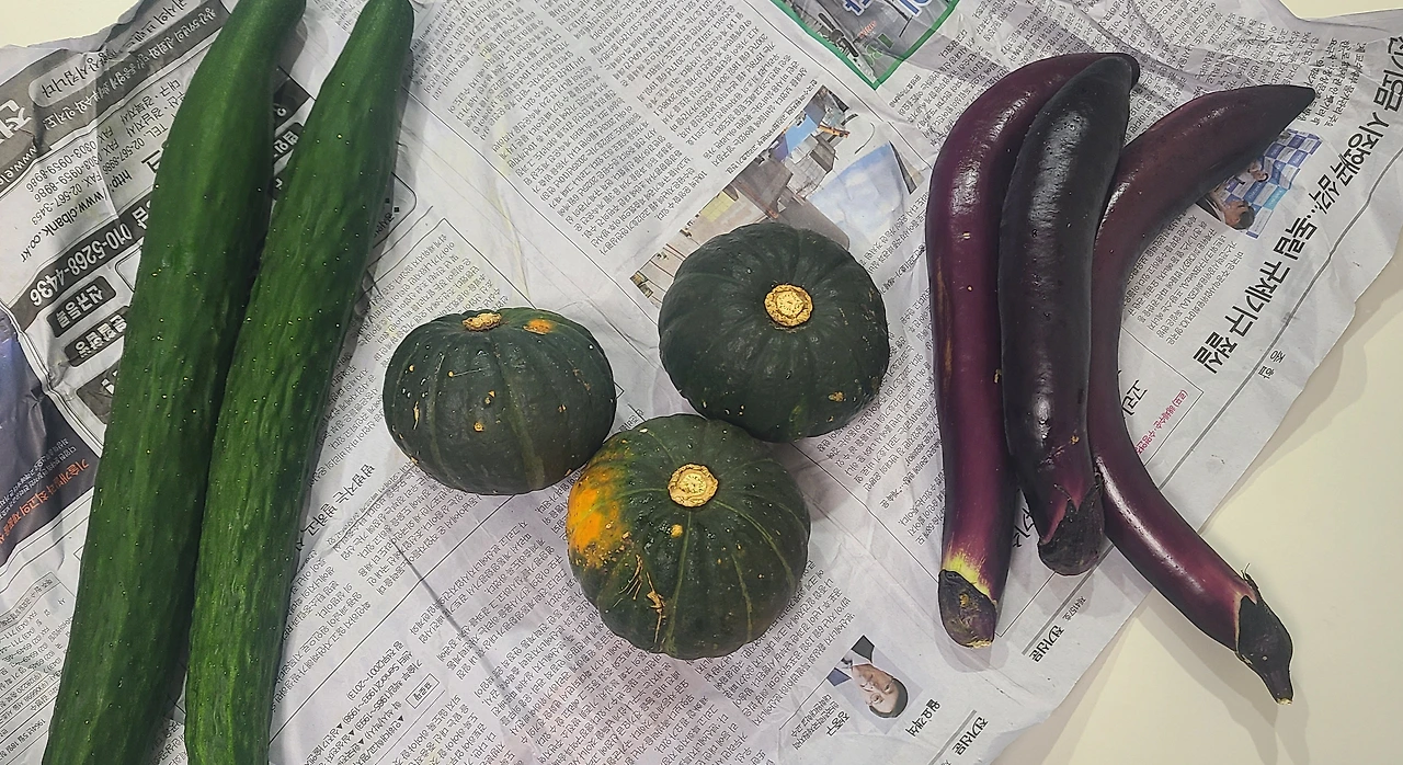 오늘도 새벽부터 밤호박에, 가지에 오이까지 또 풍성하게 받았다. 이것을 어떻게 요리조리 요리해서 잘 먹을지 생각하며 주신 정성을 되새겨 본다.