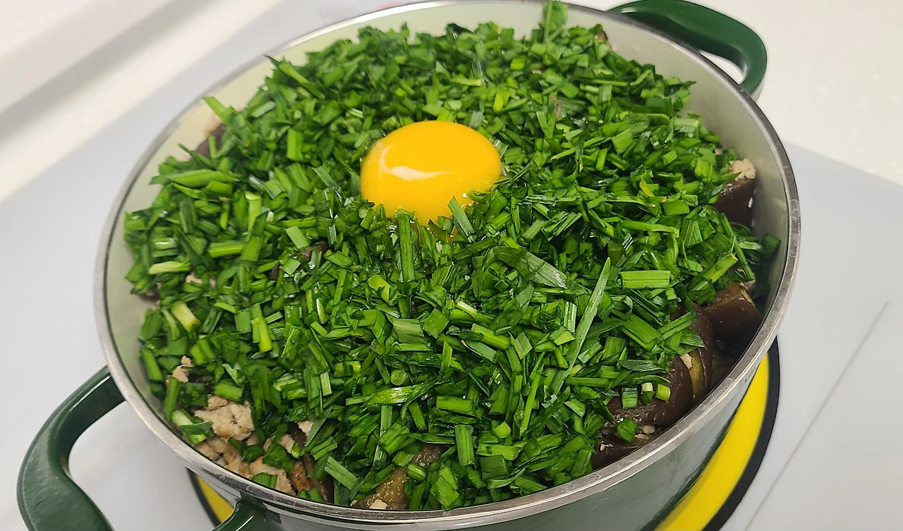 그렇다면 이번에 우리 집에 주렁주렁 열린 가지로 무엇을 해 먹을지 고민에 들어갔다. 가장 손쉽게 할 수 있는 것은 가지밥인데, 대파로 파기름을 내고, 가지와 다진 돼지고기를 함께 볶아 쌀 위에 이불 덮듯 덮어서 해 먹는 솥밥이다. 가지밥은 나중에는부추를 소복이 덮어주고 계란 노른자로 화룡점정하듯 올려 참기름을 휘릭 두른 뒤 주걱으로 쓱쓱 비벼 먹는다.
