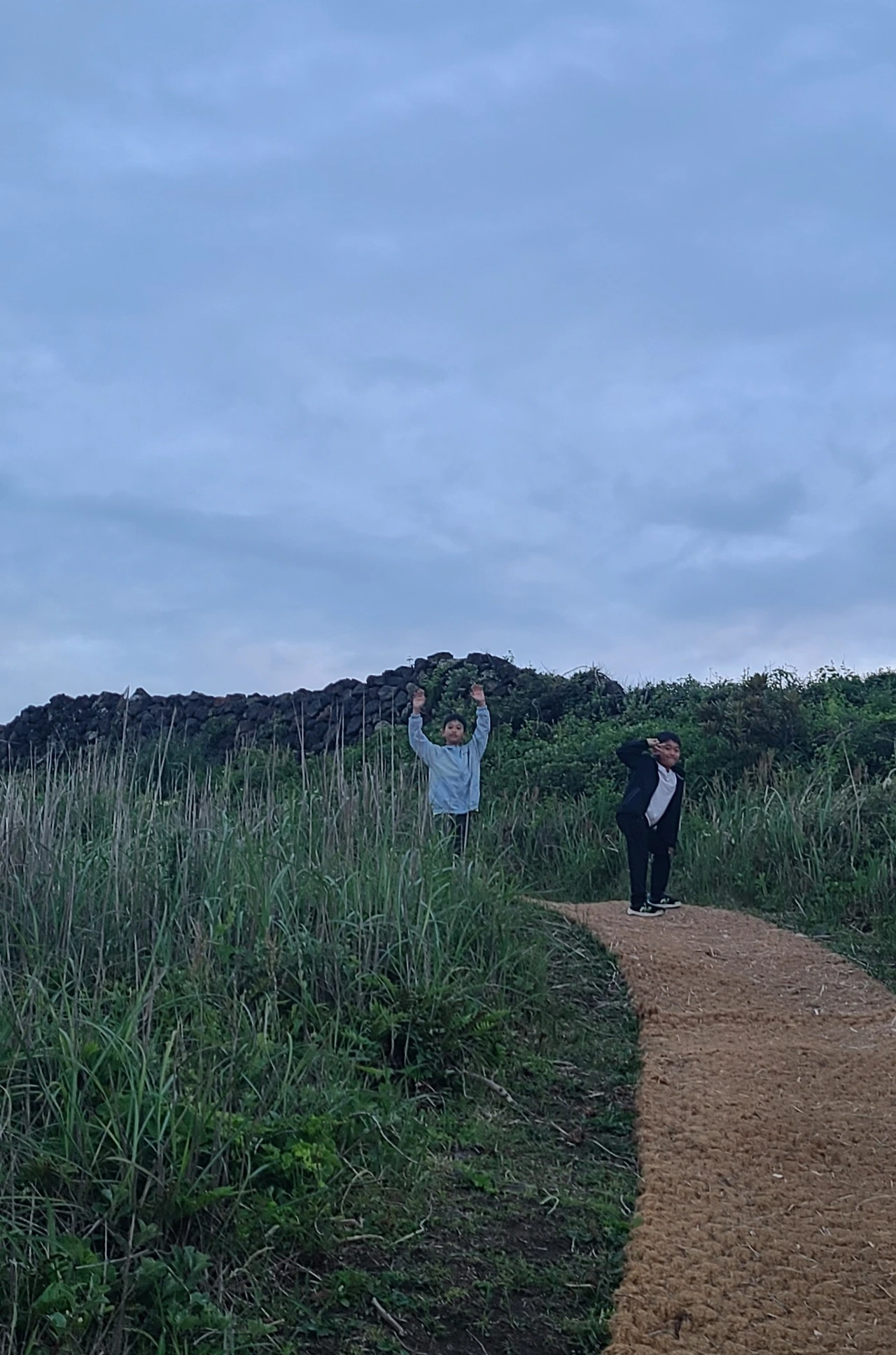 산책을 할 때 나누는 이야기의 주제는 주로 아이들, 서로의 일과 관계된 이야기들, 실수담들, 웃긴 일들 등을 나누는데 실없는 농담 따먹기도 많이 한다. 제주다 보니 렌터카가 지나가면 렌터카를 오늘 얼마나 봤는지 이야기하고 요즘 해 지는 시간이 빨라졌다며 이야기를 한다. 어제에 비하면 고작 1~2분 빨라진 거지만 7월에 비해 이제 얼마나 당겨졌는지 이야기하며 주식이야기 하듯 침을 튀기기도 한다.