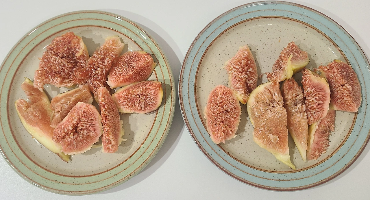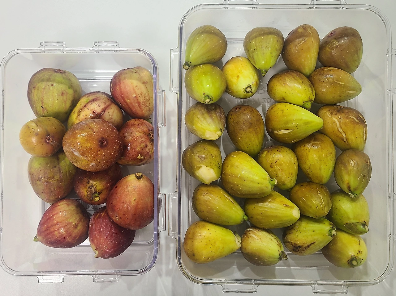 왼쪽이 잘 익은 무화과라서 빨리 먹어야 한다잘 익어서 별 모양이 생긴 무화과는 맛있는 상태라는 걸 어디서 들어서 알고 있는 터라, 우선 아이들과 그런 무화과를 쏙 쏙 뽑아서 쓱 쓱 씻어서 잘 먹었다.