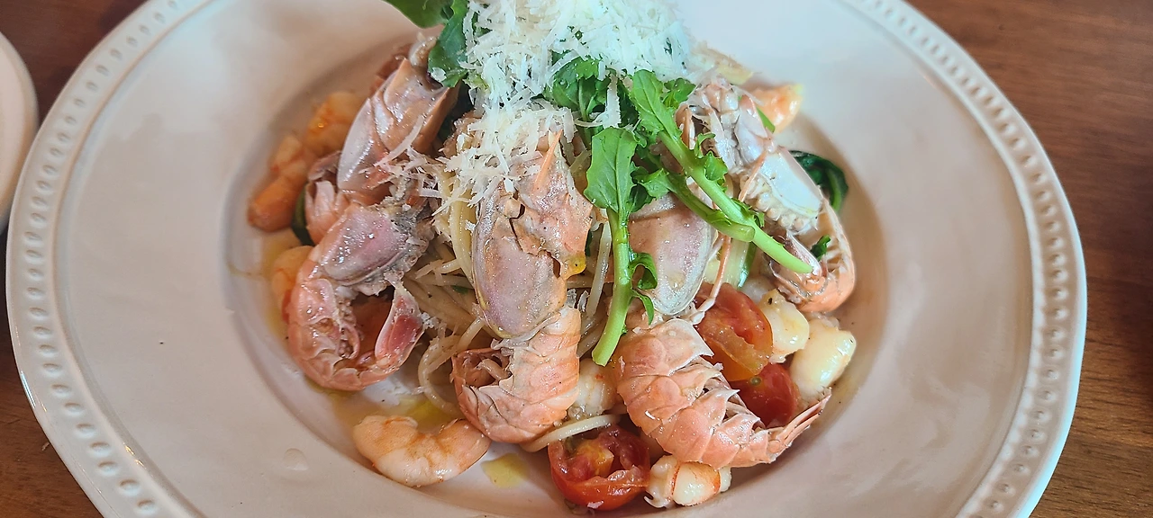 아끈식당은 도민 맛집이라고 하기엔 너무 유명해져서 알 만한 사람은 다 아는 곳이다. 이곳에서 나의 원픽은 딱새우루꼴라오일 파스타인데, 상큼한 루꼴라, 딱새우와 치즈가 비주얼부터 훌륭하게 나오는 파스타로 딱새우는 먹기 좋게 손질되어 있다. 작은 새우도 많이 들어 있는 데다가 맛도 훌륭해 갈 때마다 먹는 파스타이다. 파스타 외에 라자냐, 샐러드 등이 준비되어 있는데 여기서 파는 모든 메뉴를 먹어 본 소감과 개인적인 취향으로는 딱새우루꼴라오일 파스타가 제일 맛있었다. 남편은 조금 다르긴 하다. 일주일에 한 번, 또는 이주일에 한 번은 꼭 들러 한 달에 3~4번 도장을 찍는 곳으로 사장님 부부와 반갑게 인사하는 정도가 되었다. 특히 남편과 같이 가면 남편을 위해서인지 파스타 양도 넉넉하게 주시는 사랑하는 단골가게이다. 인스타로 휴무를 공지하고 오후 3시에 클로징을 하니 가기 전 인스타를 확인해서 영업유무를 살펴야 한다.