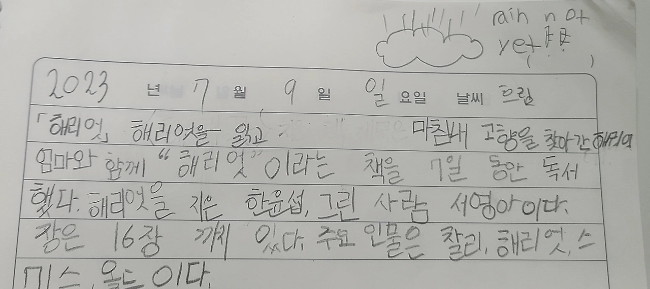 라고 적어두었다. 아직 글에 두서가 없고 생각나는 대로 쓴 글이지만 그래도 아이와 다시 책 읽기를 시작하고 기록으로 남겨두었다는 데에 감사를 느낀다.