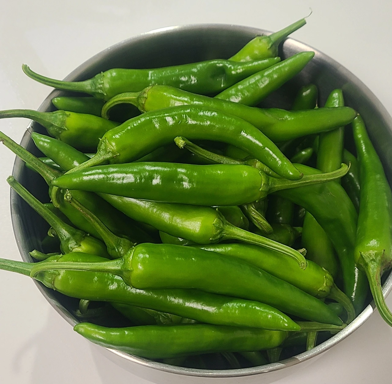 고추나무 한 그루에서 오늘 수확한 고추들. 어림잡아도 30개는 넘어 보인다.
