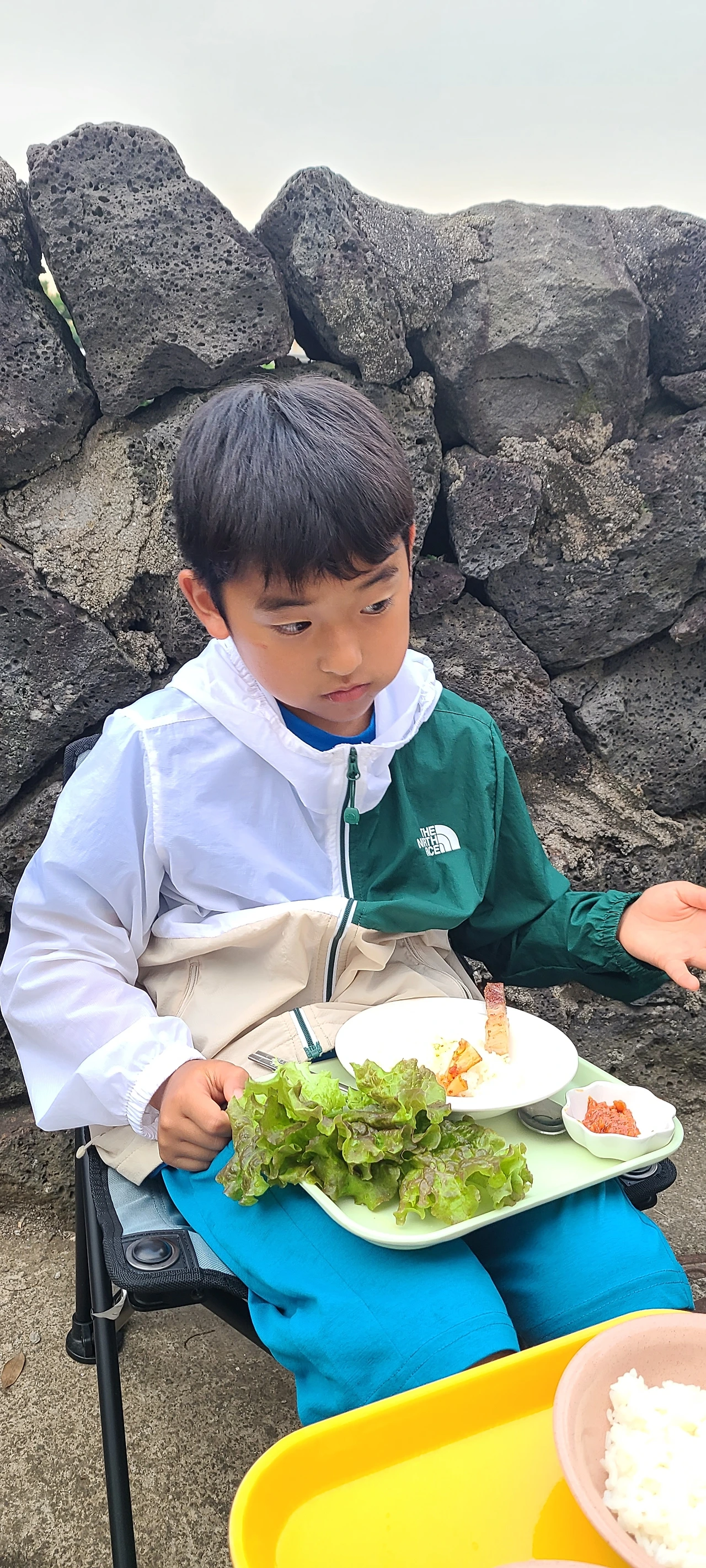 무릎에 맞는 트레이에다 상추와 쌈장 세팅까지. 우리만의 완벽한 세팅제주에 와서는 친구도 지인도 없이 그저 우리 가족만 보고 사는 삶이었다. 간혹 아이들 친구와 친구 엄마들을 만나곤 하지만 어쩌다 한 번씩일 뿐, 단출하게 4 식구만 바라보고 산다. 인간관계가 너무 좁아져 환기시킬 구멍이 조금 있으면 했지만 나만 그런 것이 아닐 것이다. 아이들도 우리 4 식구밖에 없을 테니, 남편도 그러할 테니 나만 답답하다 여기지 말고 우리 가족을 바라보며 꽉 찬 듯 그렇게 산다. 큰 이벤트 없이 매일 보는 풍경도 질릴 법 하지만 그래도 매일 한 뼘씩 자라나는 텃밭 식물들을 보고, 아이들 얼굴을 보며 하루도 무탈하게 지나가는 것에 감사하며 산다. 매일이 똑같고 변화되는 게 없이 느껴지지만 아이들은 자라고 있고 매일이 쌓여 결국에는 변화됨을 느낀다.
