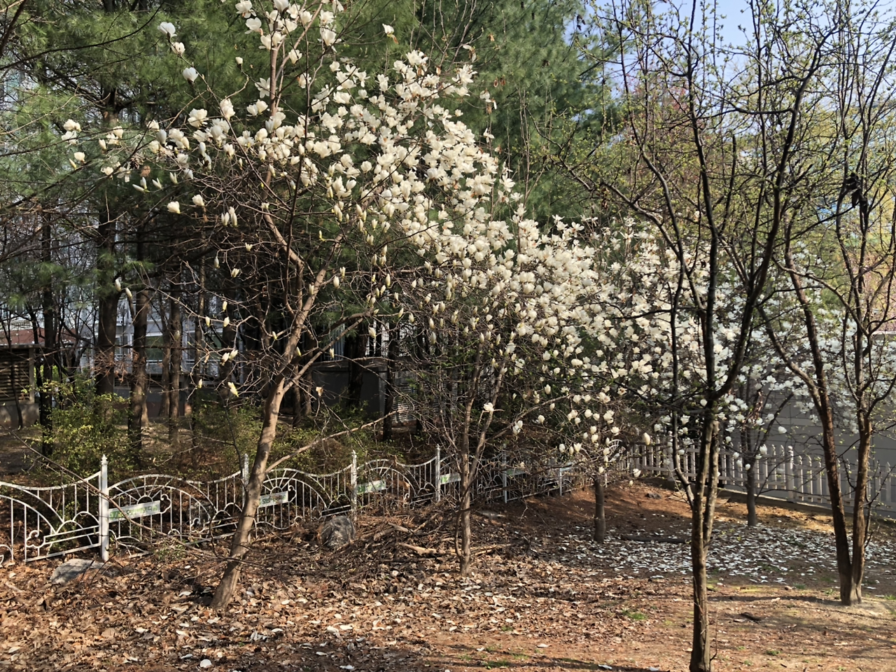 4월, 소나무 언덕의 줄무늬 길냥이들은 어디론가 떠나고, 그들이 놀던 자리에는 하얀 목련이 막 절정을 지나고 있는 중입니다. 이 소나무 언덕에서 어느 가을과 겨울, 또 한해의 사계를 한가로이 살아가던 길냥이들은 그들의 인생을 살러 어느 낯선 길로 훌쩍 떠나간 것일까요? 한때는 ‘하루’와 ‘내일’이, ‘리틀 타이거’와 ‘크리스’ 라고 불리웠던 날들을 남겨두고.