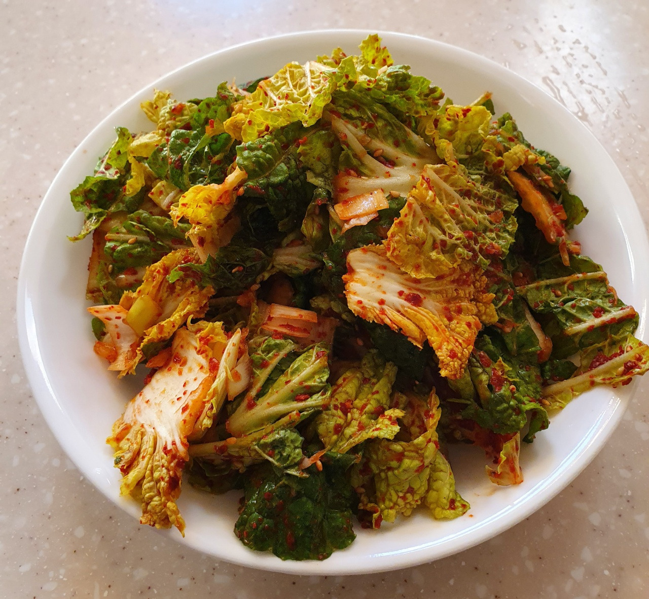 갓 수확한 배추로 만든 겉절이 어제, 오늘 점심에는 배추 겉절이를 해 먹었다. 밭에서 바로 따서 벌레가 많이 잡수신 겉잎은 떼어내고 한 장씩 씻은 다음 작게 잘랐다. 배추 속에서 살고 있던 작은 벌레가 쫄쫄 싱크대를 기어갔다. 그러거나 말거나 나는 마늘, 고춧가루, 새우젓, 매실액, 파, 멸치액젓, 깨소금, 참기름을 썰어놓은 배추에 넣고 살살 버무려 접시에 담았다. 국수에 곁들여 먹으니 갓 담근 싱싱함과 아삭함, 그 뒤에 이어지는 단맛이 이게 정녕 내가 만든 음식이란 말인가를 연발하게 했다. 매실액을 조금 넣었는데도 이렇게 단 것을 보니 배추된장국의 단맛처럼 배추가 단 것 같았다.
