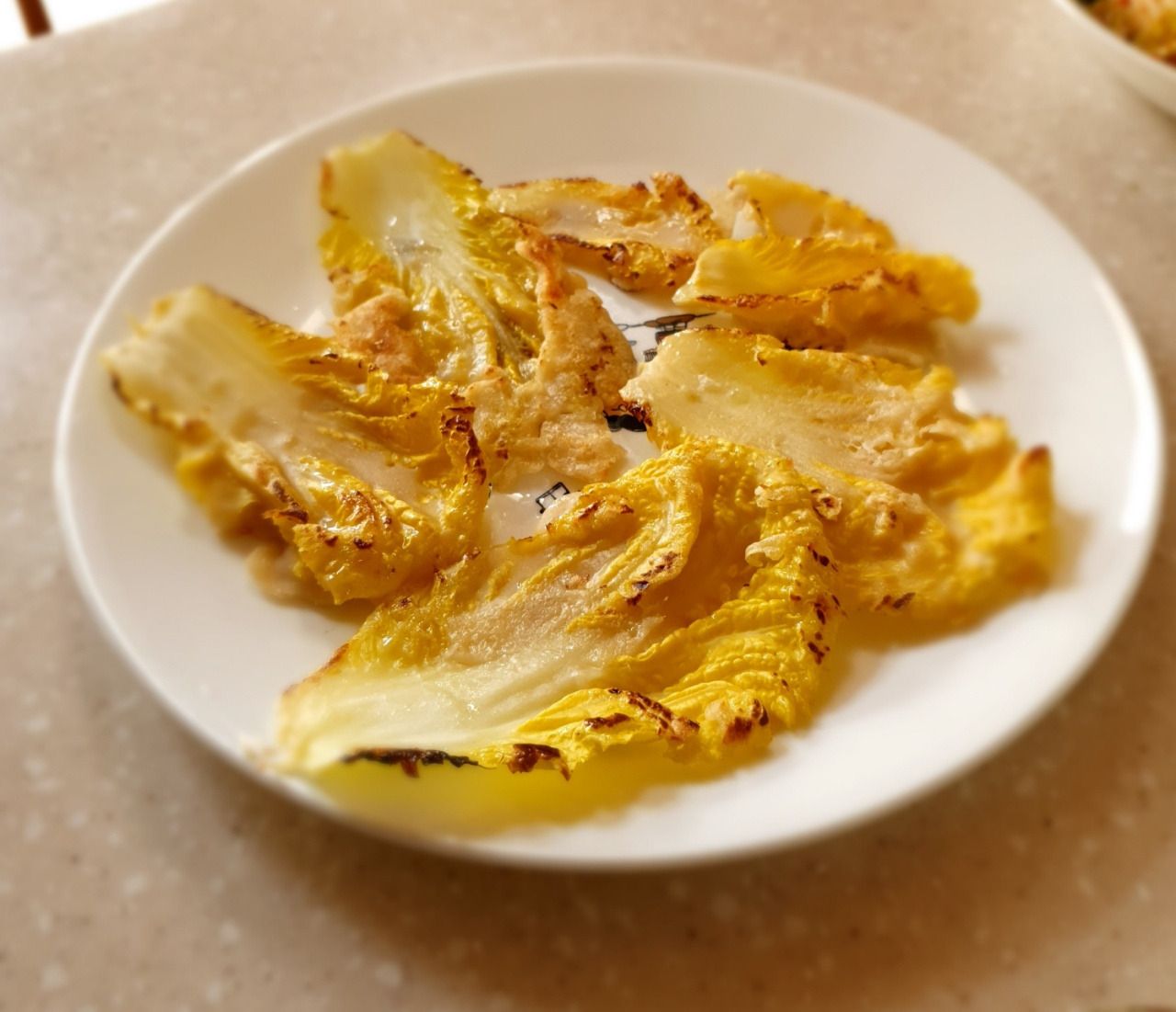 오늘은 배추 고갱이만 골라 노란색 배추전을 해보았다. 부침가루에 소금을 약간 더한 뒤 약간 걸쭉하게 반죽을 만들어 배춧잎에 살짝 묻힌다. 달궈진 팬에서 앞뒤로 살짝 익혀주면 숨은 약간 죽었지만, 여전히 살아있는 배추의 식감을 느낄 수 있다. 간단하게 간장, 깨소금, 후추, 참기름으로 만든 소스에 옷깃만 살짝 스치듯 담가 먹으면 된다.