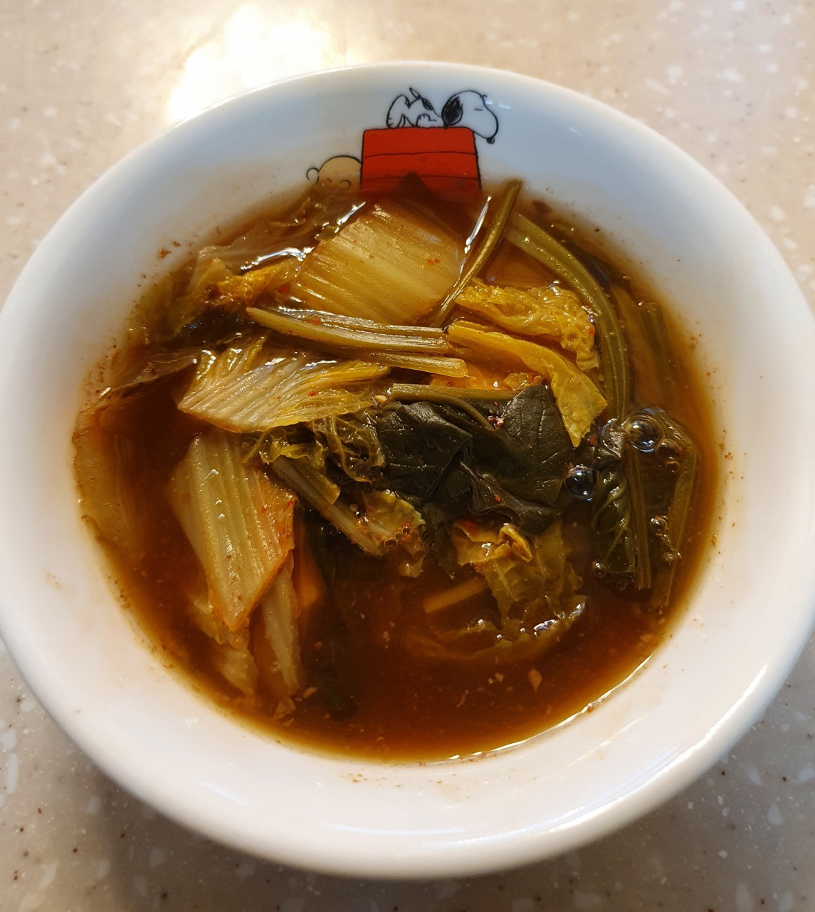가장 먼저 해 먹은 요리는 배추된장국이었다. 물에 멸치, 다시마로 육수를 내어 배추 고갱이와 남아있던 시금치를 조금 넣고 된장, 고춧가루를 풀어 끓였다. 이런 음식은 주로 나만 먹기 때문에 내 입맛에 맞게 간단히 끓였다. 별다른 가미를 하지 않았는데도 국물에서 은은한 단맛이 느껴졌다. 한층 부드러워진 배춧잎이 술술 넘어가니 밥이 없어도 국만 따로 떠서 한 대접 하고 싶을 정도로 좋았다.
