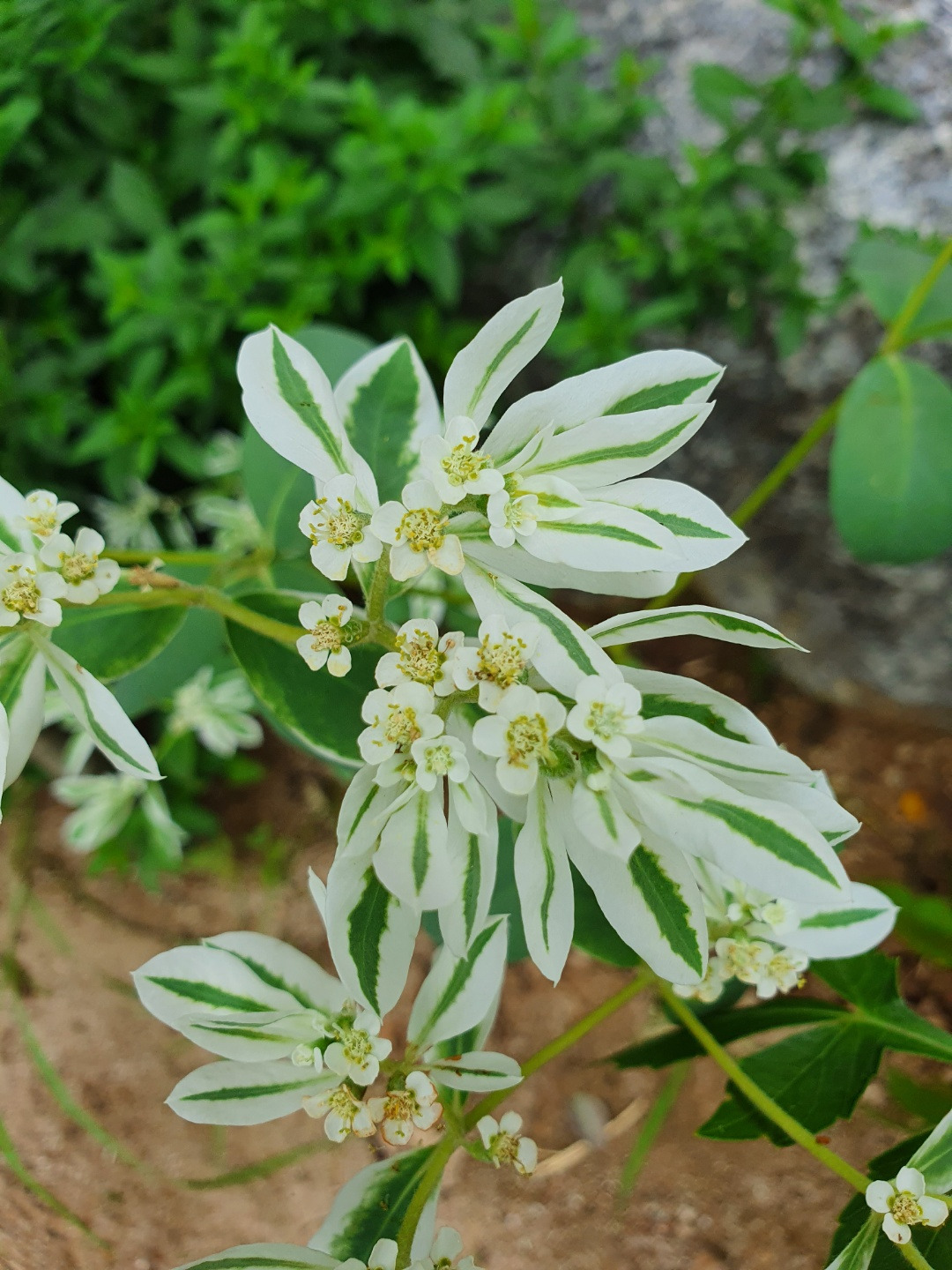 설악초는 누차 언급한 꽃 전문가 선생님께서 본인의 마당에서 있는 몇 가닥을 뽑아 주셔서 심었는데, 자라고 보니 양평 여기저기에서 요즘 한창 볼 수 있는 설악초였다. 멀리서 보면 하얀 무늬 잎이 시선을 끌지만 가까이 보면 아기 같은 꽃이 피어있다.