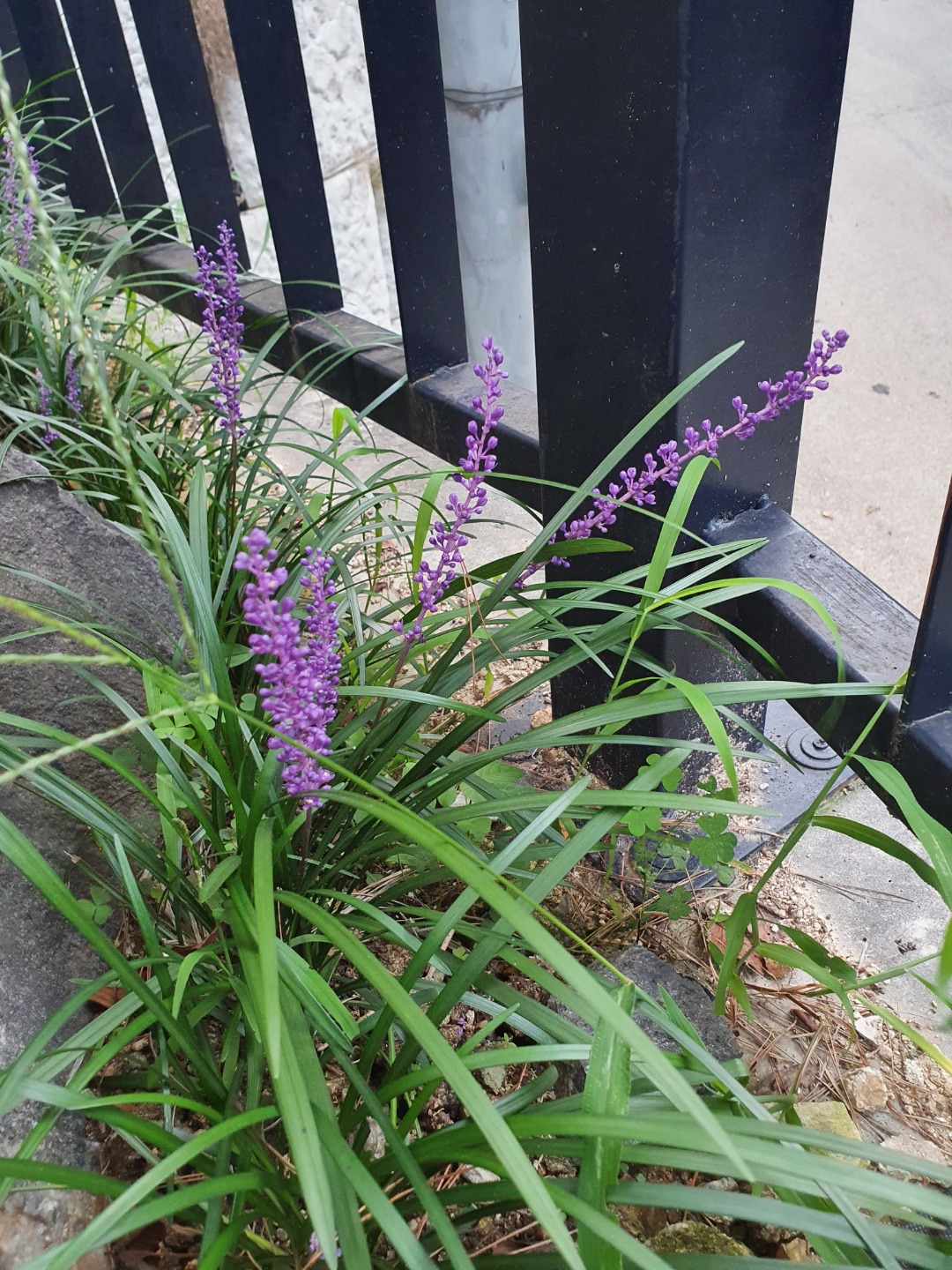 봄에 심은 맥문동은 보라색 꽃을 매달았다. 가느다랗게 뻗은 줄기가 조금은 심심하고 무미건조해 보이는 식물이었는데 보라색 꽃을 피워내니 화룡점정이라고나 할까. 완전체가 되었다고나 할까. 보라 덕후인 내게 요즘 새로운 미를 선사하고 있다.