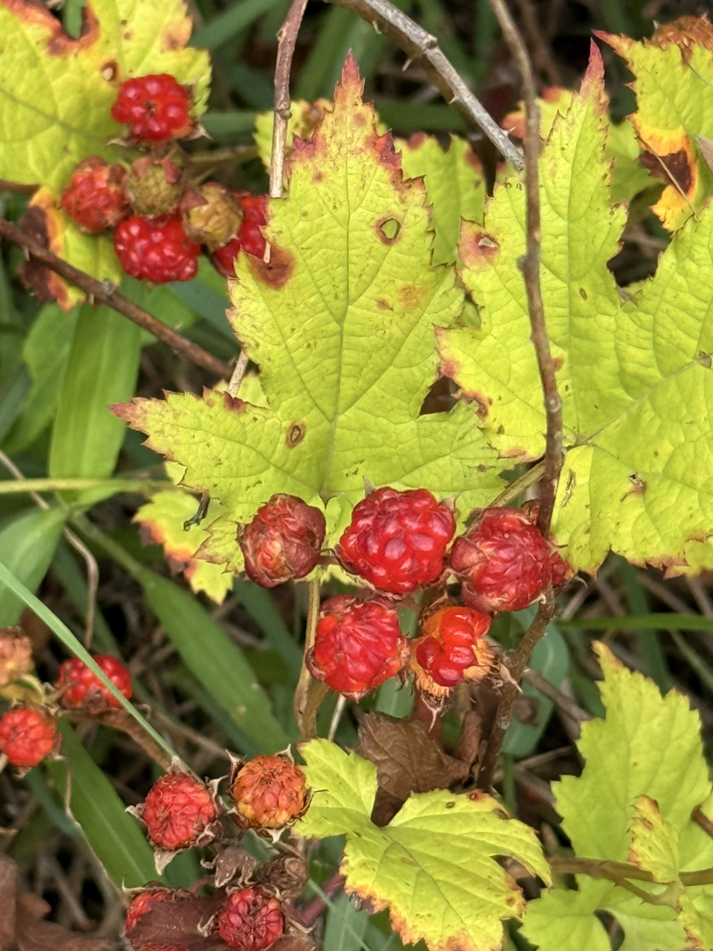 산딸기가 봉우리에서 톡! 하고 나왔다.