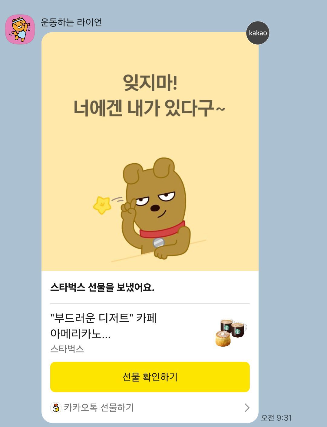 메시지와 함께 인기 있는 프랜차이즈 카페의 커피와 디저트 기프티콘이었다. 위생사실에 앉아 그 화면을 한참 바라보았다. 13년 만에 다시 취업한 내 하루를 이 친구는 말없이 지켜보고 있었던 것 같다.