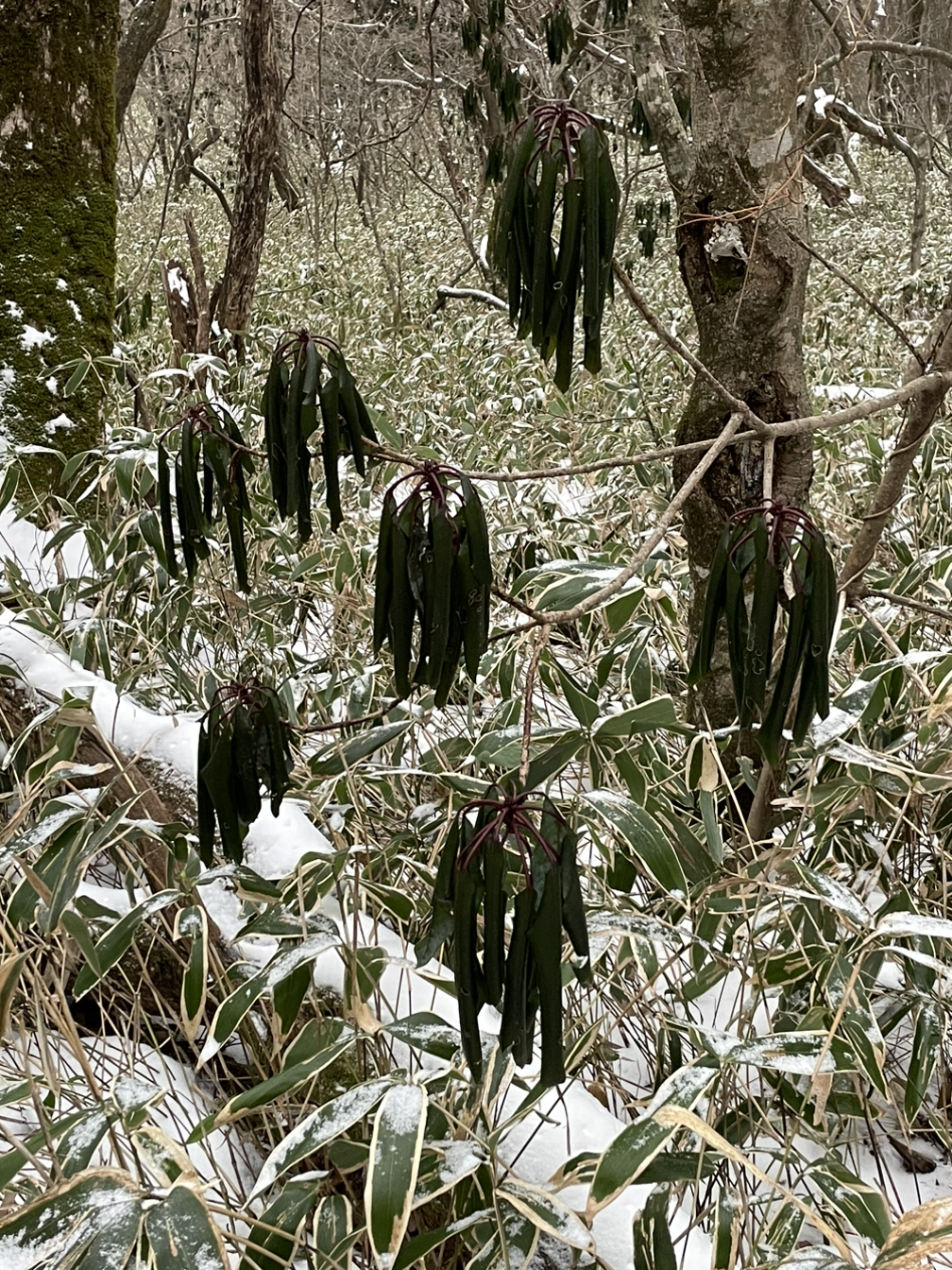 내가 미역나무라고 이름 붙인 나무. 진짜 이름은 모르겠다. 등산 초반에 이 나무가 굉장히 많았는데, 이파리들이 아래로 축 처져있으니까 괜히 스산했다.