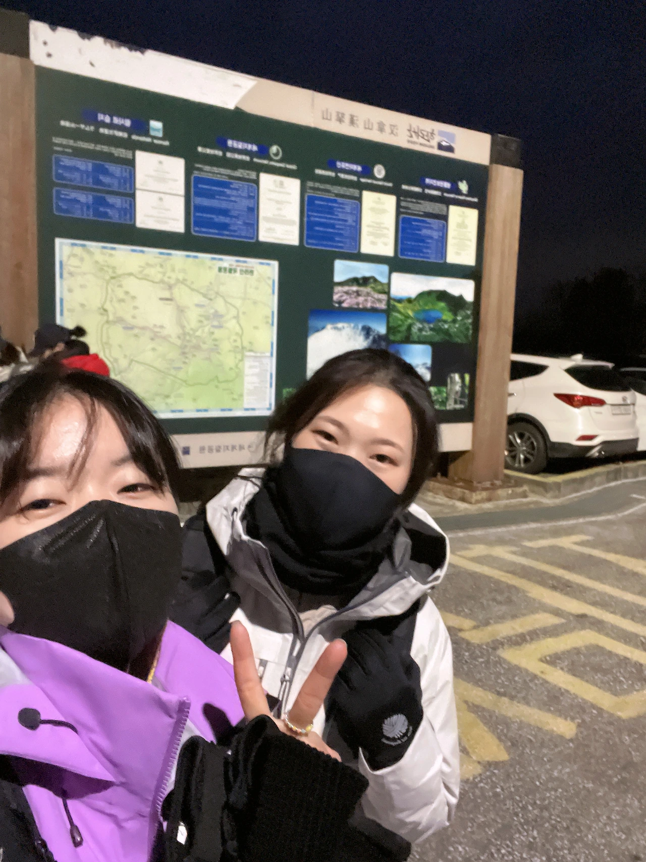 셔틀버스 아저씨의 외침에 잠에서 깨어나 부랴부랴 내렸다. 20명 남짓 돼보였던 사람들 중 관음사코스에서 내린 사람은 4명. 우리 2명, 커플로 보이는 남녀 2명. 힘든 하루가 될 수도 있겠단 생각을 함과 동시에 콧 속으로 들어온 맑고 찬 공기에 정신이 번쩍들었다. 아직 어둑어둑했지만 꽤 많은 사람들이 산행을 준비하고 있었다.