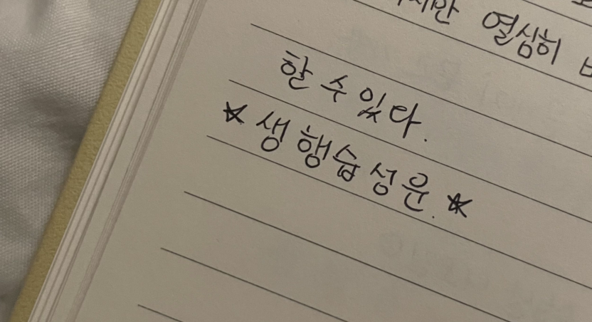 마무리로 ‘생행습성운’을 딱 적으면 진짜 합격할 것만 같은 기분이 들었다. 이 설레는 기운들이 차곡차곡 쌓여 합격을 할 수 있었지 않을까?