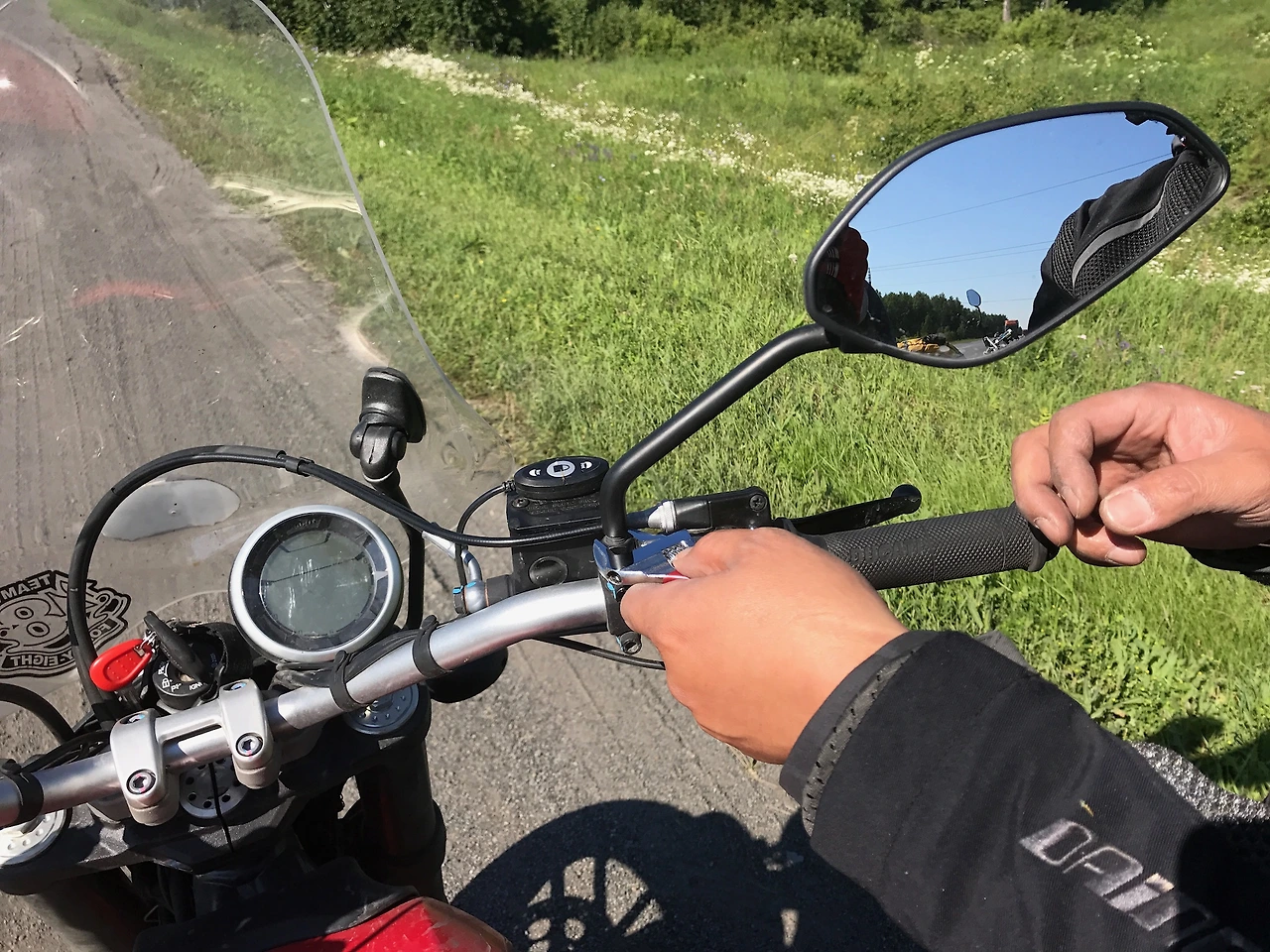 작열하는 태양 아래, 아침부터 부산을 떨었건만 우앗, 소리를 내며 잠시 바이크를 세워야 했다. 사이드미러가 갑자기 위잉 하며 푹 고꾸라졌다.