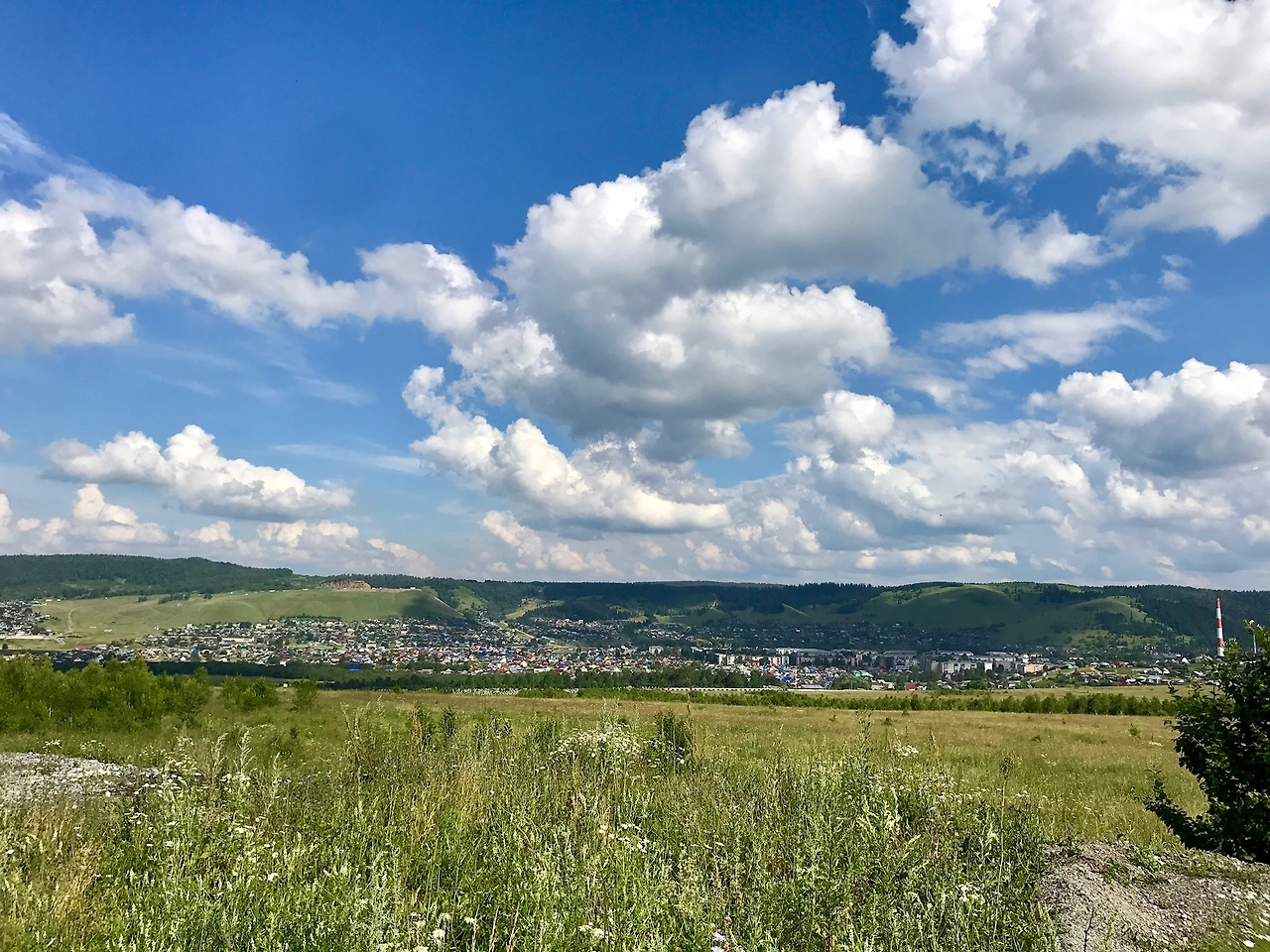 우랄산맥의 끝자락에 이르니 늦은 오후이다. 얼른 숙소에 도착해야 하는데 도저히 지나칠 수 없는 곳이 나타났다. 한참 전에 멈춰 세우고 싶었는데 줄줄이 내려오는 차량의 흐름을 거스르지 못하고 기회를 엿보다 결국 제일 마지막 언덕을 넘자마자 멈췄다. 이미 가장 아름다웠던 뷰 포인트는 지나쳤다. 멀리 지나온 길이 보인다.