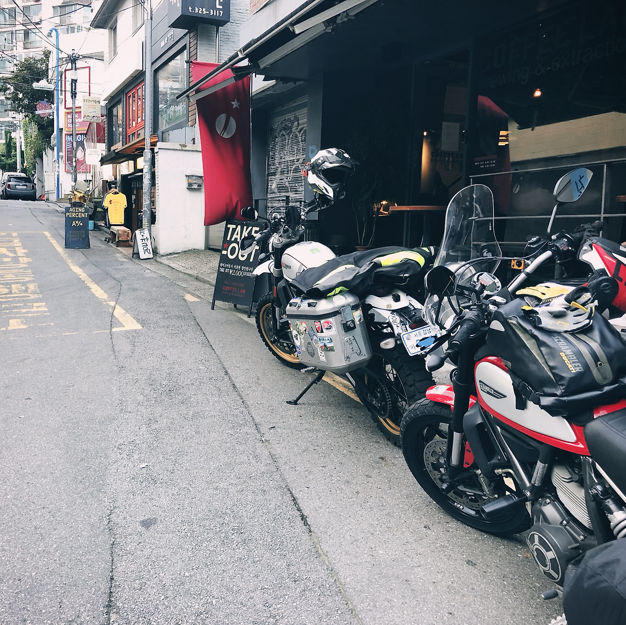 서울은 정말이지 서울다운 라이딩을 선사했다. 십 년 넘게 단골인 홍대 카페에 도착하자마자 헬멧을 벗어던지고 아이스라테를 외쳤다. 익숙한 커피맛이 목구멍을 타고 내려가고 편안함이 밀려오자 내게 고향은 이곳일지도 모른다는 생각이 든다. 언제나처럼 변하지 않고 그곳에 있었으면 하는 작은 가게들 덕분이다. 함께 하던 이들은 모두 그 때와는 다른 위치에서 살아가고 있으니. 이마저도 사라지면 내 고향은 어디가 될까. 그때쯤이면 제주도가 고향처럼 느껴질까.