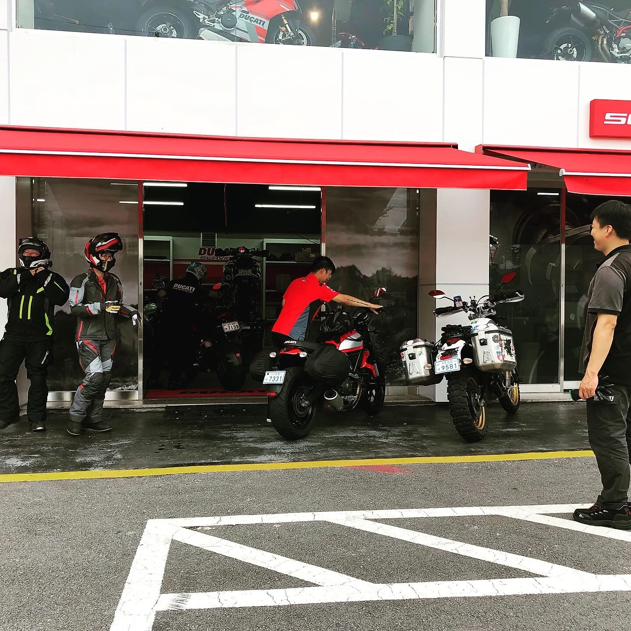 본격적인 서울 투어를 앞두고 분당에 들러 바이크 정비를 하기로 했다. 일 년을 넘긴 제주도 생활 동안 한 번도 제대로 점검을 받지 못했다. 조금의 이상한 점만 생겨도 점검을 받았기에 이렇게 오랜 기간 바이크를 방치한 것이 처음이다. 덕분에 지난겨울 처음으로 방전을 경험했고, 엔진 오일이 말라버린 걸 도로 위에서 발견했다. 안전하게 유라시아 횡단을 도와준 스크룡에게 미안한 마음이 든다. 간만의 정비라 이것저것 다 체크하고 타이어를 갈고 브레이크 패드도 바꾸고 휘어버린 사이드 미러도 조정한다. 무려 4시간이 걸렸다. 두카티를 알게 된 후로 가장 도움을 많이 준 정비 팀장님은 어느새 사장님이 되셨다. 두카티 분당의 사장님으로 만난 그는 예전보다 날렵했고 사장님의 포스를 뿜어냈다. 바이크를 타는 사람에게 정비를 잘하는 곳이란 천국과도 같은 곳이다. 특히, 나처럼 타기는 해도 바이크는 몰라요 스타일에겐 꼭 필요한 소중한 장소이다.