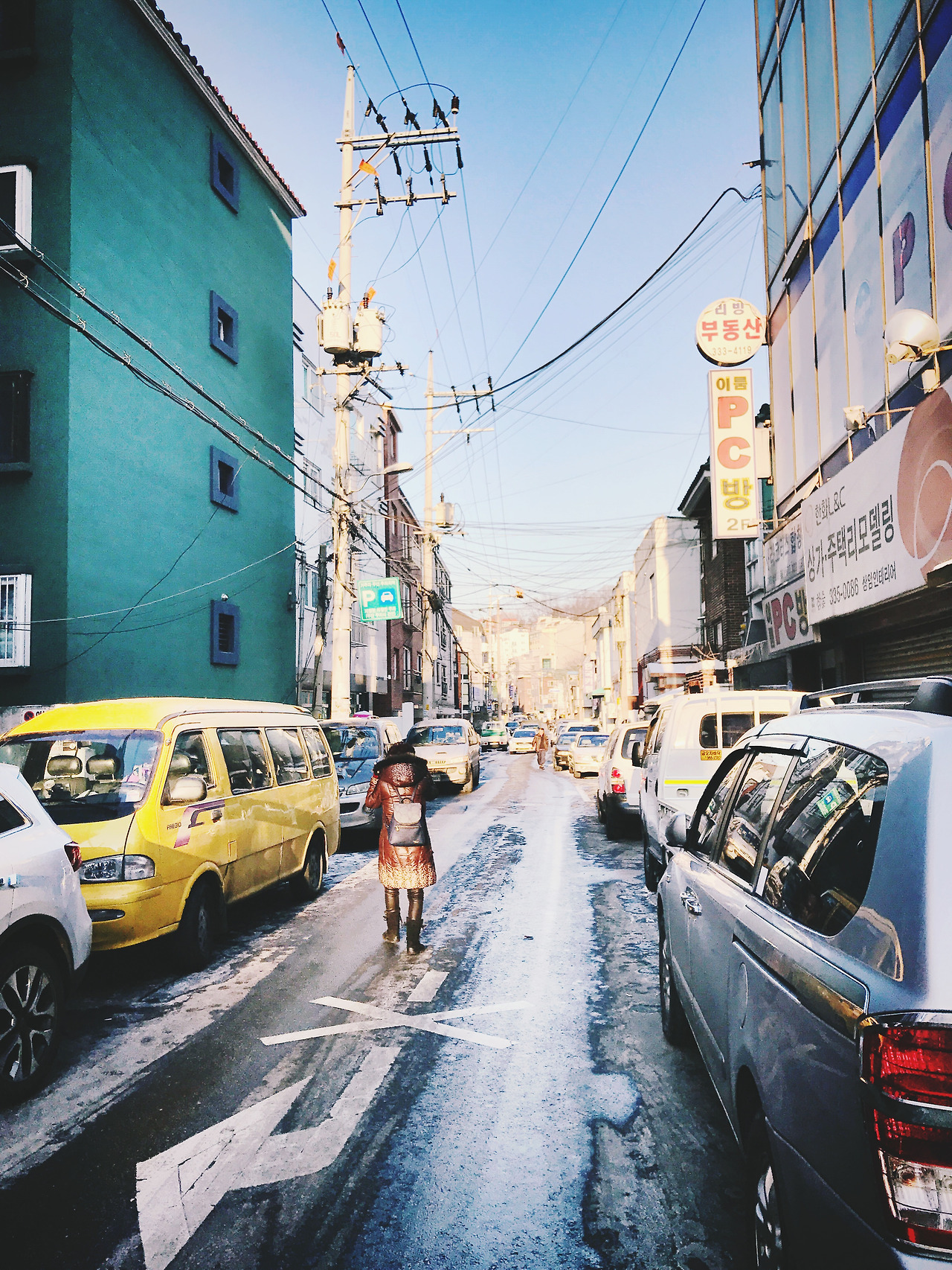 겨울의 차가운 기온과 낮은 햇살이 어우러져 동네의 풍경이 정겹다.
