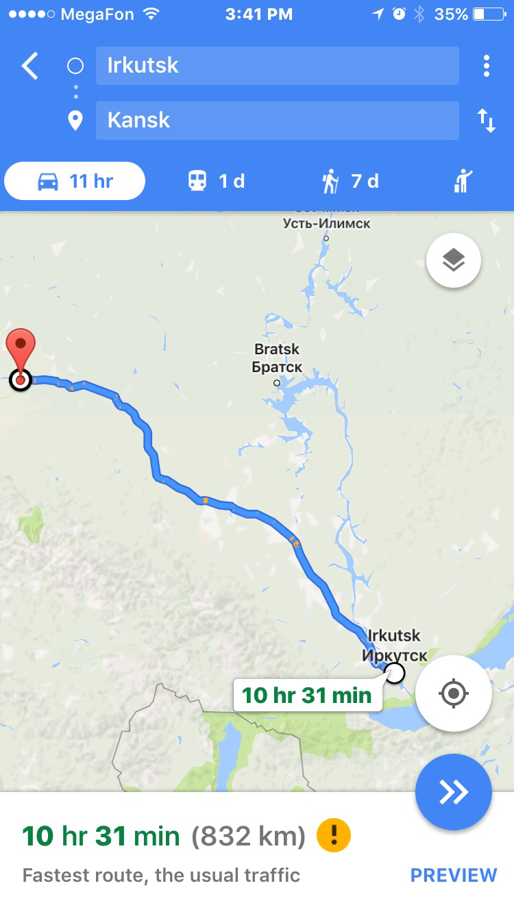 우리의 다음 정착지가 정비를 위한 노보시비리스크이다. 출발할 때만 해도 언제 점검을 받으러 갈지 까마득하기만 했는데 시간도 길도 참 빠르게 흘렀다. 그 첫 번째 점검 지를 얼마 남기지 않고 이르쿠츠크를 떠난다. 남은 거리를 계산해본다. 중간에 두 개의 도시를 거치기로 한다. 미리 약속된 시간에 도착해야 점검을 받고 오일도 교환할 수 있다. 그 꿈같은 점검이 코앞이다. 믿기는가. 벌써 대륙의 중간이다.