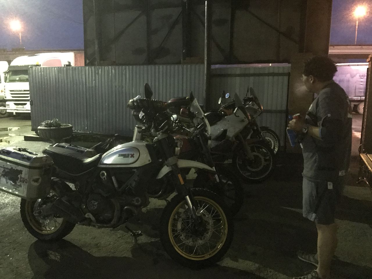 한 시간이면 닿을 거리인데 벌써 예상시간을 넘겼다. 이로써 하루 12시간 라이딩을 넘어선다. 어두워진 도로에 차들의 불빛에 의존한다. 거의 체념 단계이다. 우비를 위아래로 챙겨 입은 나는 다행이지만 금방 닿을 것이라 예상한 짝꿍은 바지가 흠뻑 젖었다. 추위와 바람이 그를 얼마나 떨게 만들까. 온통 나의 안전만이 우선인 그는 절대 춥다는 말을 하지 않는다. 13시간을 넘긴다. 속도는 60km/h에서 올라가질 못한다. 그래도 이제 도착 도시에 들어왔나 보다. 거의 다 왔다고 웃으며 조금만 더 견디자는 이야기를 마지막으로 블루투스가 끓긴다. 마지막 숙소의 입성을 앞두고 고가 도로에 올라탔다가 다시 회전해서 내려와야 한다. 앞장선 신랑과의 대화 없이 교통상황을 파악하고 적당히 빠른 속도로 건너편 숙소로 들어가야 한다. 대형 트럭들이 이미 주차되어 있다. 곳곳에 웅덩이들이 도로의 상태를 알 수 없게 만든다. 그럼에도 스로틀을 감는다. 저기 눈 앞에 우리의 숙소가 있다. 이 정도쯤이야 내 바이크가 알아서 달려줄 것이다.