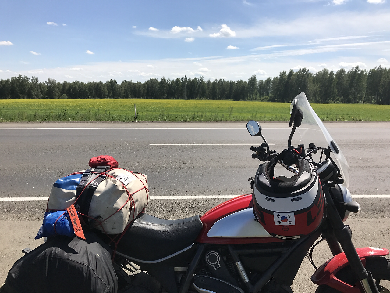 이 넓은 대지에 사는 사람이 없는 걸 보면 얼마나 척박하고 힘든 땅이었던 걸까. 그 옛날 시베리아로 유배를 떠난 사람들은 얼마나 춥고 외롭고 힘들었을까. 그 땅을 바이크로 여행하는 우리는 그 야생에 감동한다. 누군가에겐 처절하게 슬픈 땅이었을 이 곳이 어디서도 보지 못할 사람의 손이 닿지 않은 유일한 장소가 돼버렸다. 그 매력에 모두들 유라시아 횡단을 꿈으로 삼는 것일지도. 라이딩의 매력도 넘치지만 주변의 황량한 느낌까지 더해지면 이 곳이 정말 지구인지, 같은 시대를 살고 있는 2017년이 맞는 건지 믿어지지가 않는다.