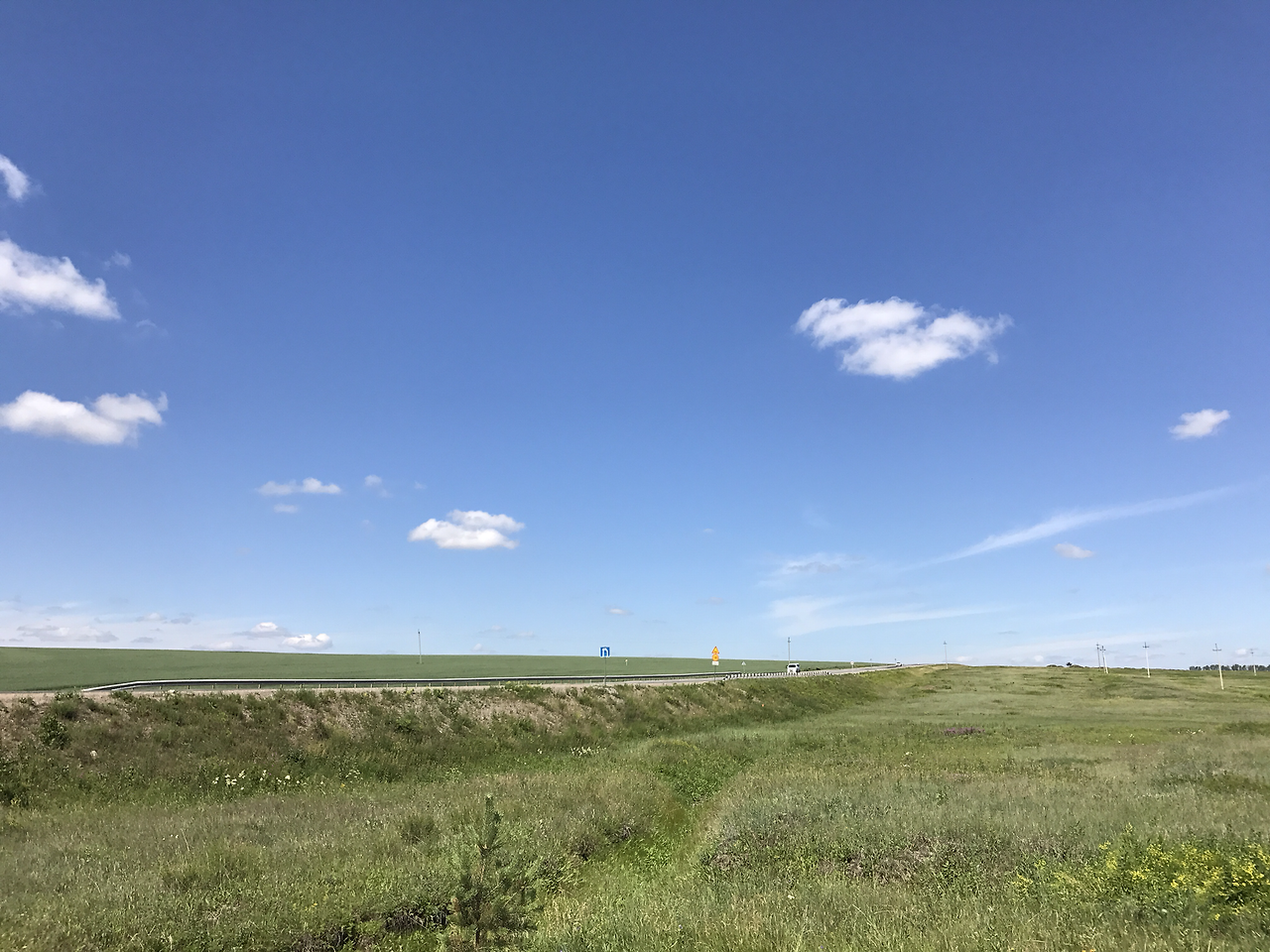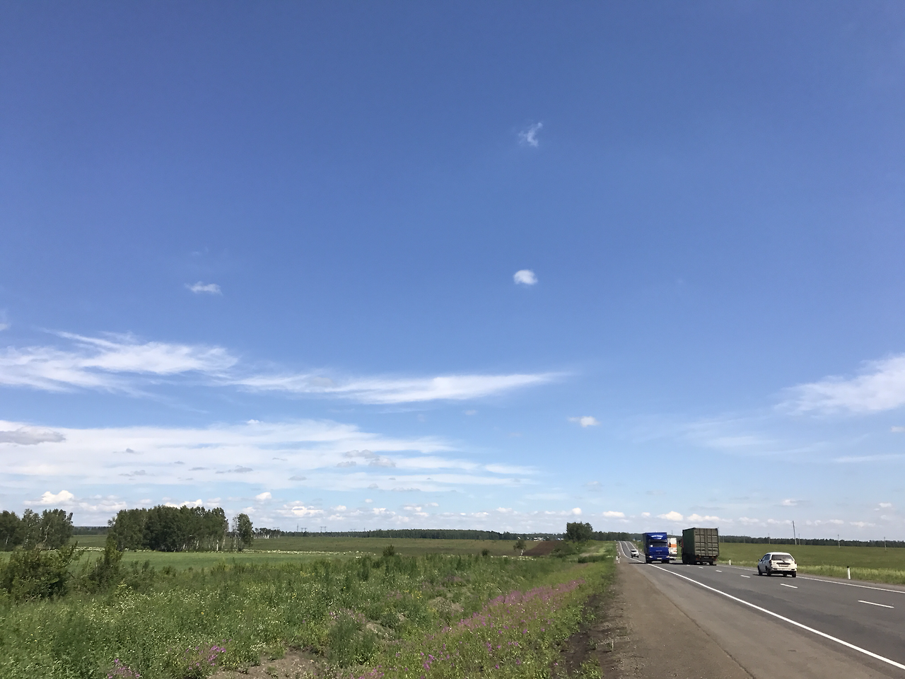 오늘도 옛날 생각에 조금씩 남은 거리들이 줄어들고 있다. 신기하게도 풍경은 비슷한 듯 다르다. 자작나무들이 흔했던 것 같은데 어느 순간엔 다른 나무들로 가득 차있다. 여긴 좀 다른가 싶다가도 어제 본 풍경과 묘하게 닮았다. 같은 대륙이라 말하기도 애매한 몇 천 킬로미터 멀리까지 왔음에도 러시아네~라는 말을 하게 된다. 내가 본 수많은 자연경관들과 본질적으로 다르다. 여기저기 여행을 많이 다녀봤지만 특별히 무엇이 다름을 만들어냈는지 왜 그런지 그 이유를 이제야 알게 된다. 유라시아의 넓디넓은 광야에는 사람의 흔적이 없다. 길을 따라 오래된 전봇대 몇 개 말고, 저 멀리 마을의 꼬랑지 같은 입간판을 가끔 만나는 것 말고, 듬성듬성 나타나는 주유소와 카페 말고는 사람이 지나다니는 길, 누군가가 경작한 흔적도 없다. 어쩌면 태초부터 지금까지 쭉 이대로 야생이었을지도. 야생이란 단어의 느낌은 극한의 산꼭대기나 맹수들이 우글거리는 밀림에만 해당되는 줄 알았다. 아름답다는 표현보다는 그냥 다르다. 태어나서 처음 본다. 그동안의 산과 나무와 하늘과 분명 같은 대상인데도 다르다. 사람의 숨결이 닿지 않은 있는 그 모습 그대로의 자연은 평범한 나무 한 그루, 길가의 풀 한 포기마저도 다르다.