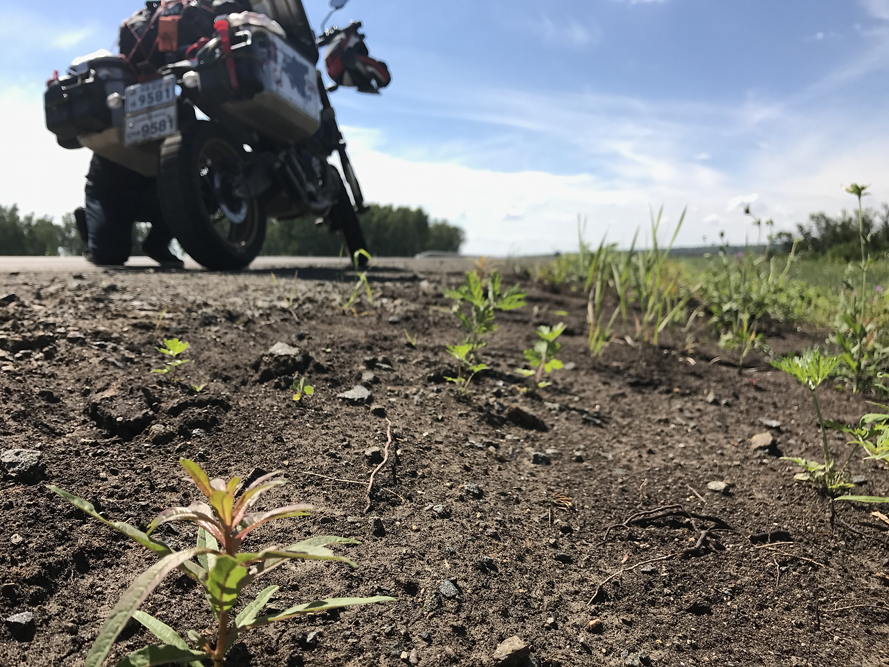 신랑의 바이크에는 무거운 짐들이 잔뜩이다. 오늘은 그 짐이 유난히 신경이 쓰인다. 러시아의 길 상태가 워낙 오락가락하는 바람에 진동은 계속되었고 자꾸 왼쪽의 알루미늄 박스가 바이크와 부딪히는 모양이다. 바이크의 상태를 매일 아침마다 점검한다. 볼트 하나 풀린 곳 없는지 혹시라도 어딘가에 이물질이 끼어있진 않은지, 그러다가 부딪힌 자국을 발견하곤 점검할 때 함께 조치를 취하기로 했다. 아직 남은 날은 이틀, 그 이틀 동안 무던히도 신랑을 괴롭힐 것이다.