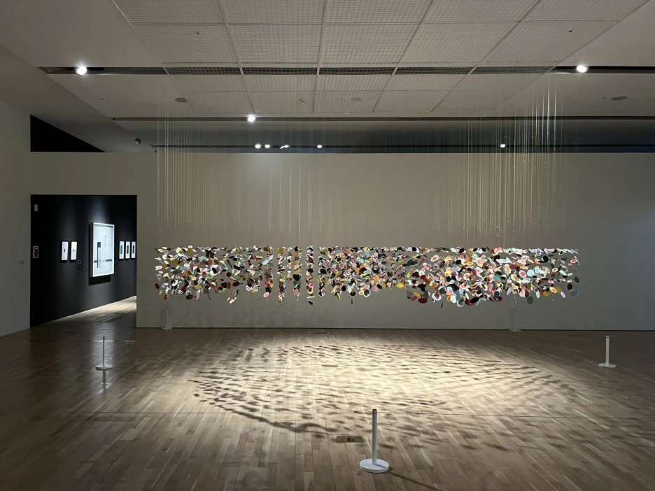 7.5M 크기의 커다란 대형 작품이 설치된 1층 전시장 입구에서 촬영하는 것도 좋지만 2층에서 내려다보면 작품은 또 다른 느낌을 준다 :) 전시 관람을 마치고 나오면 2층에 포토존이 준비되어 있다. 피터 세쥴리의 <색상환II>을 연상시키는 포토월 앞에서는 화려한 조명 탓인지 생각보다 사진이 어둡게 나오지만, 바닥에 드리워지는 빛의 그림자가 매력적이다.