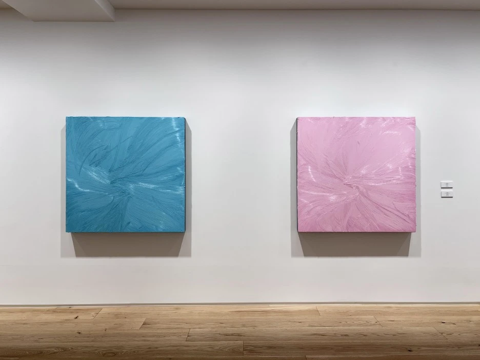 이번 전시의 제목은 '수렴'이다. 캔버스(알루미늄 판을 사용했으나 포스팅에서는 편의상 캔버스라 적는다) 위에서 춤을 추는 붓 자국들은 캔버스 중앙의 하나의 접점으로 '수렴'된다. 설명문에 따르면 작가는 이를 '공간과 시간의 합일' 이나 '경계의 조우'로 설명하며 외부의 움직임이 하나의 점으로 모이는 것을 명상적 행위에 빗대기도 했다. 작품을 통해 그는 움직임이나 수행에 대한 진지한 고찰을 이어간다.