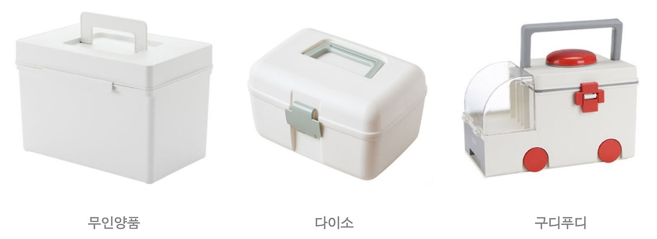 이번 주제를 들은 짝꿍 에디터가 그 와중에 예쁜 구급상자를 추천하고 싶다며 무인양품 구급상자를 가져왔어요. 한국에도 없는 이 제품은 구급상자 연관 검색어에 뜰 정도로 유명하네요! (일본 여행가게 되면 꼭 사세요!!) 이미 온갖 직구와 공구가 잦은 품목이라고 합니다. 그렇다면 저는 아기자기한 구디푸디, 아니면 가장 저렴한(단 돈 3,000원!) 다이소 구급상자를 추천해 봅니다. 취향대로 골라보세요!
