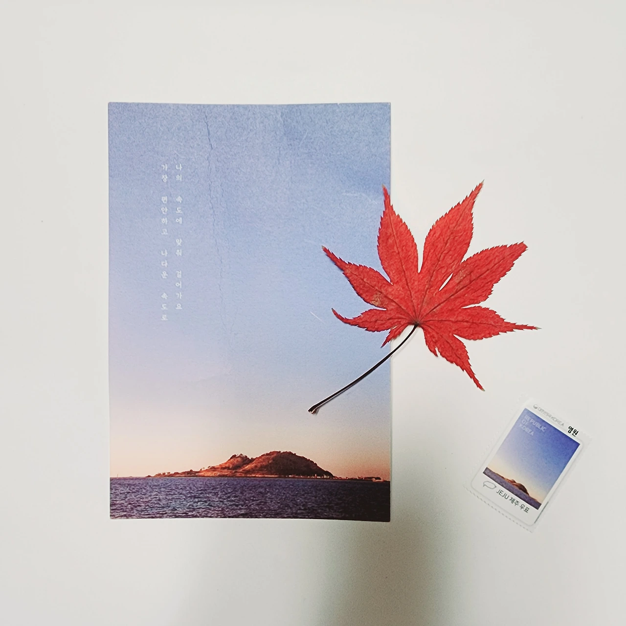 곱게 물든 단풍과 엽서 그리고 우표.
