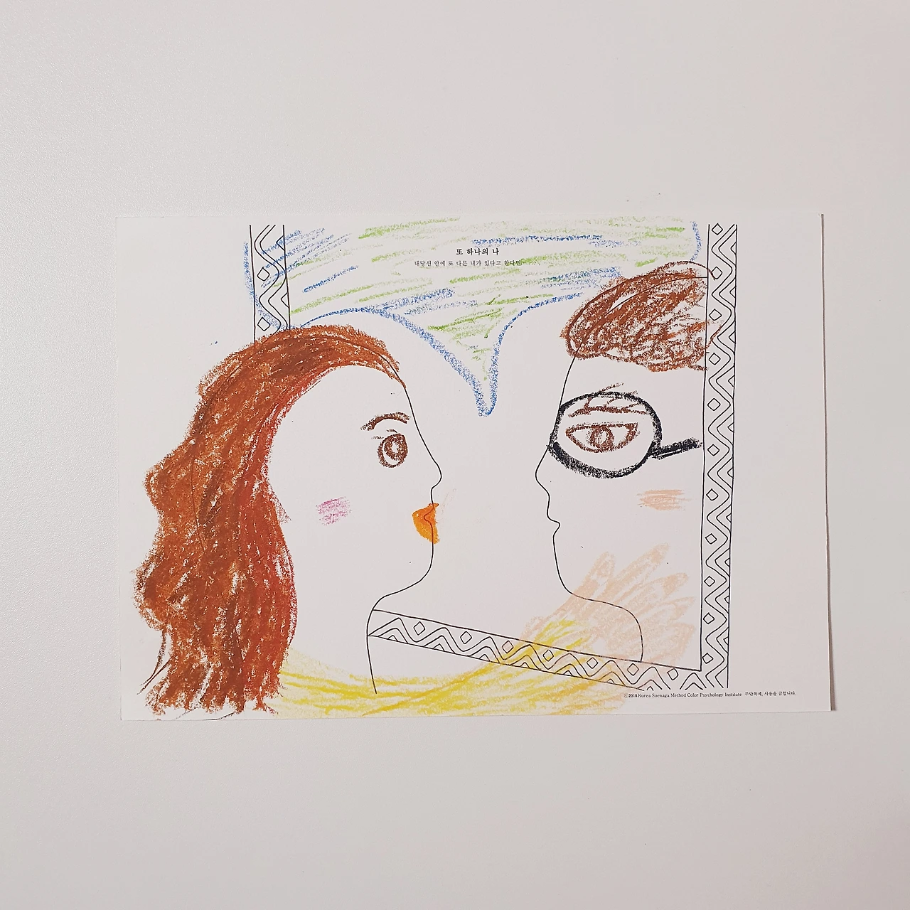 글 쓰고 노래하는 엄마로 3년 넘는 시간을 보내며 내가 느낀 건 나를 표현하는 도구가 다양할수록 더욱 다채로운 나를 찾아갈 수 있다는 거다. 낯선 상황, 익숙하지 않은 행위에서 뜻하지 않게 새로운 나의 감정을 직면하게 되기도 한다. 오늘처럼 말이다. 내 안에 또 다른 내가 있다고 한다면 어떤 모습일까?라는 질문을 받고 스윽스윽 그림을 그리기 시작했다. 나는 그림이 서툴고 잘 그릴 줄도 모른다. 그저 마음이 이끄는 대로 오일 파스텔을 슥슥 문지르다가 문득 발견했다. 남편을 닮은 사람을 그리고 있는 나를. 거울 속 그를.