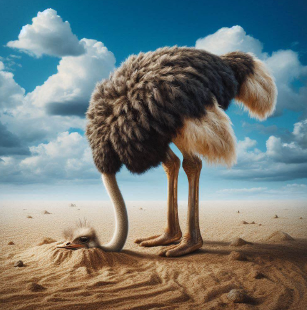 주1> 타조가 포식자를 발견하고 땅속에 머리를 파묻으면 마치 포식자가 사라진 것처럼 느껴지지만 실상은 포식자가 사라지지 않은 것처럼 현실도피를 이에 빗댄 것 (나무위키)