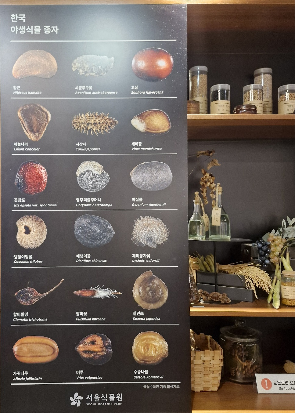 꽃과 열매, 곡식의 씨앗이 옹기종기 전시되어 있는데, 얼마나 재미있었는지 몰라.