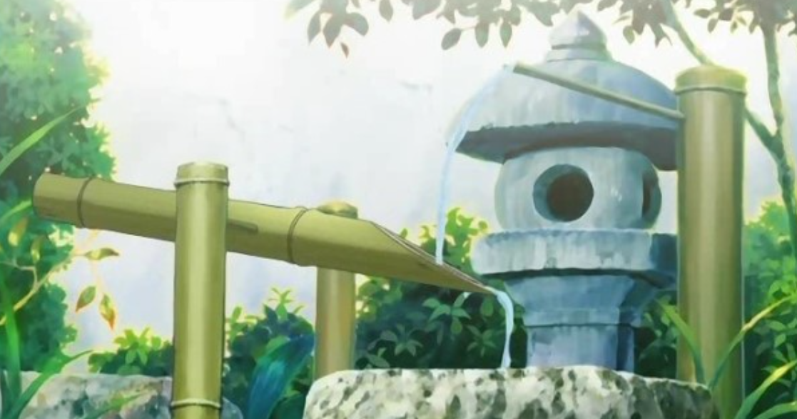 멀리서도 보이니? 대나무 바구니 말이야. 시간이 지나면 종소리가 들리고 또 물을 쏟아내지. 안을 들여다볼 수 없지만 유추해 보자면, 바구니 안으로 물이 차고 있는 것이지. 물이 가득 찬 사실을 종소리가 알려주고. 무거웠던 바구니가 흔들리기 시작해. 곧 물이 쏟아질 것이라는 신호야.