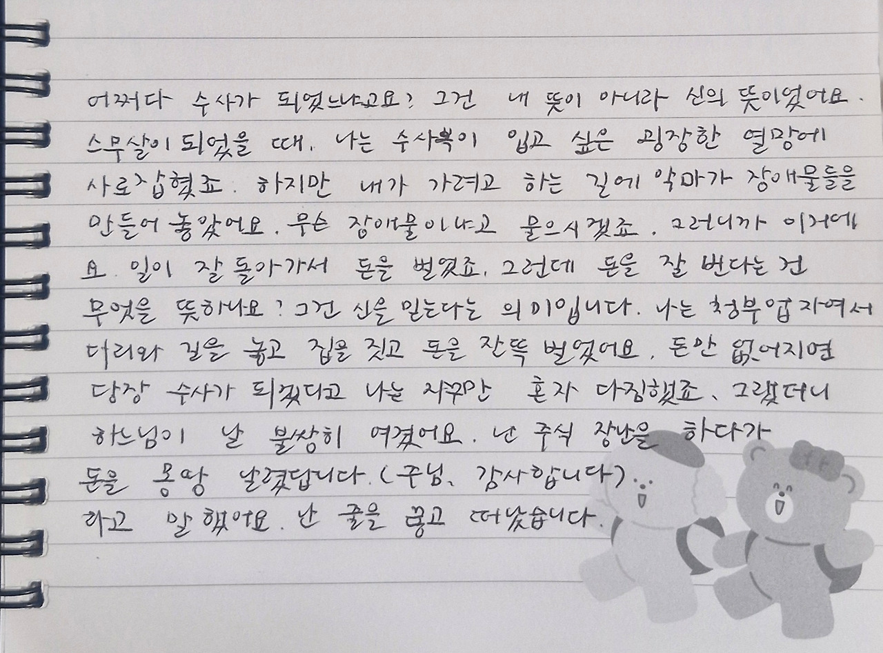 그랬더니 하느님이 날 불쌍히 여겼어요.