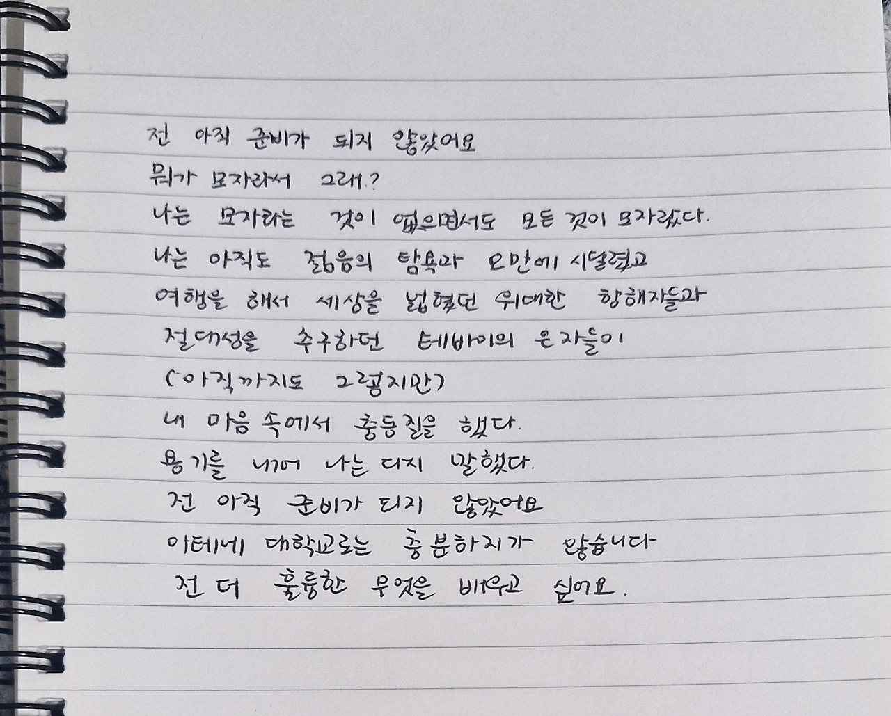 '전 아직 준비가 되지 않았어요. 아테네 대학교로는 충분하지가 않습니다.