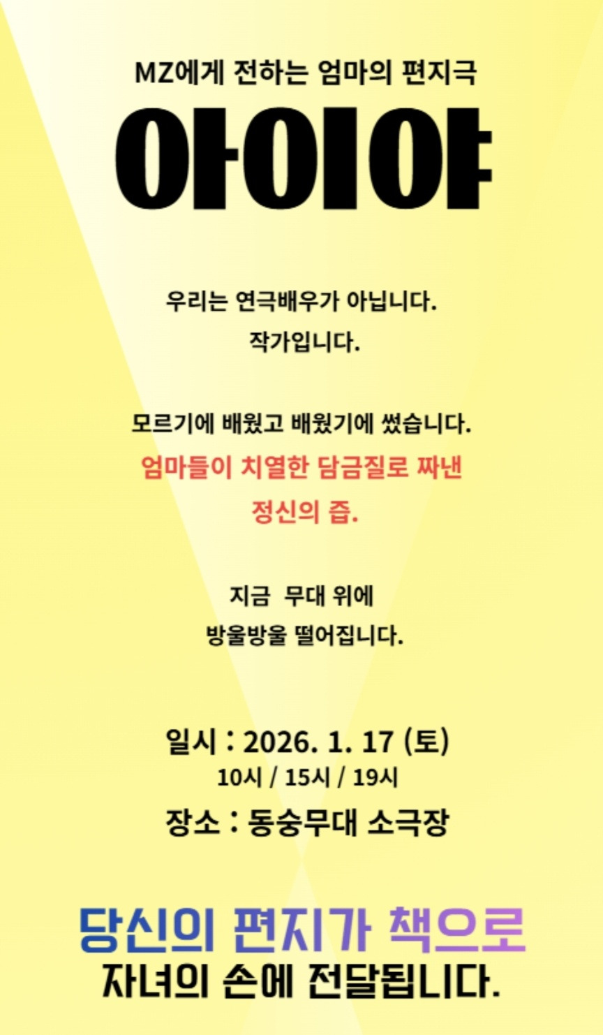 [추천 연극] “아이야, 너는 너로 살아라” 국내 최초 ‘엄마의 편지극’, 대학로 무대에 오르다