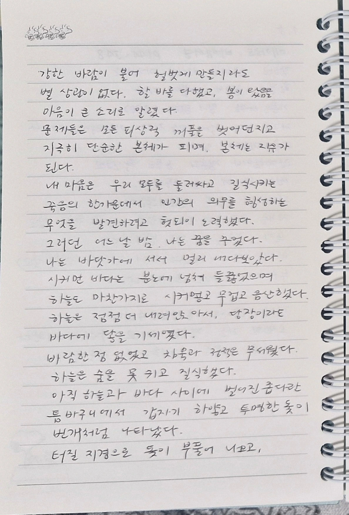 봄이 왔음을 마음이 큰소리로 알렸다.