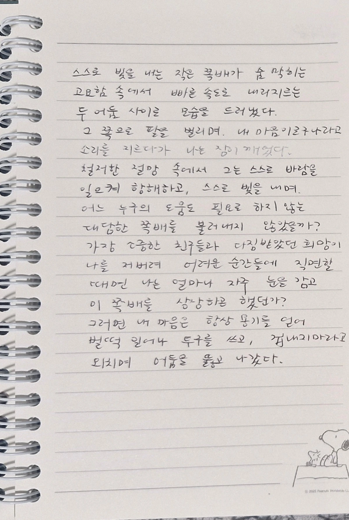 스스로 빛을 내는 작은 쪽배가 숨 막히는 고요함 속에서