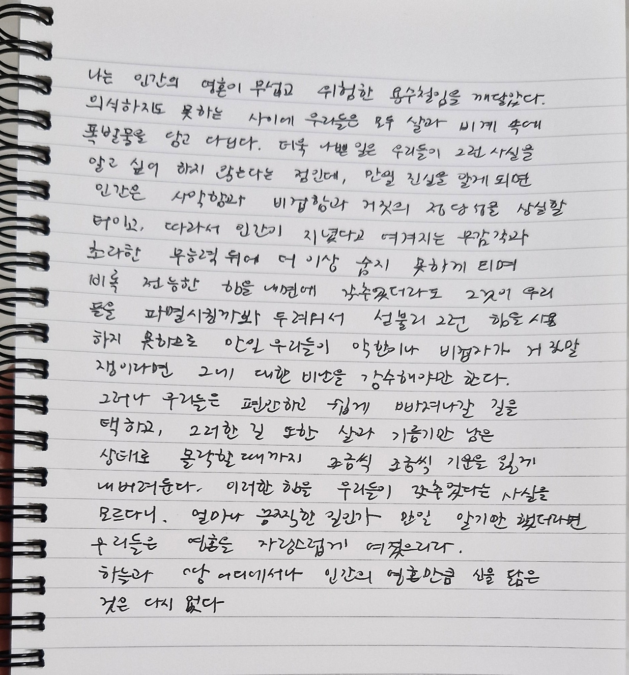나는 인간의 영혼이 무섭고 위험한 용수철임을 깨달았다.